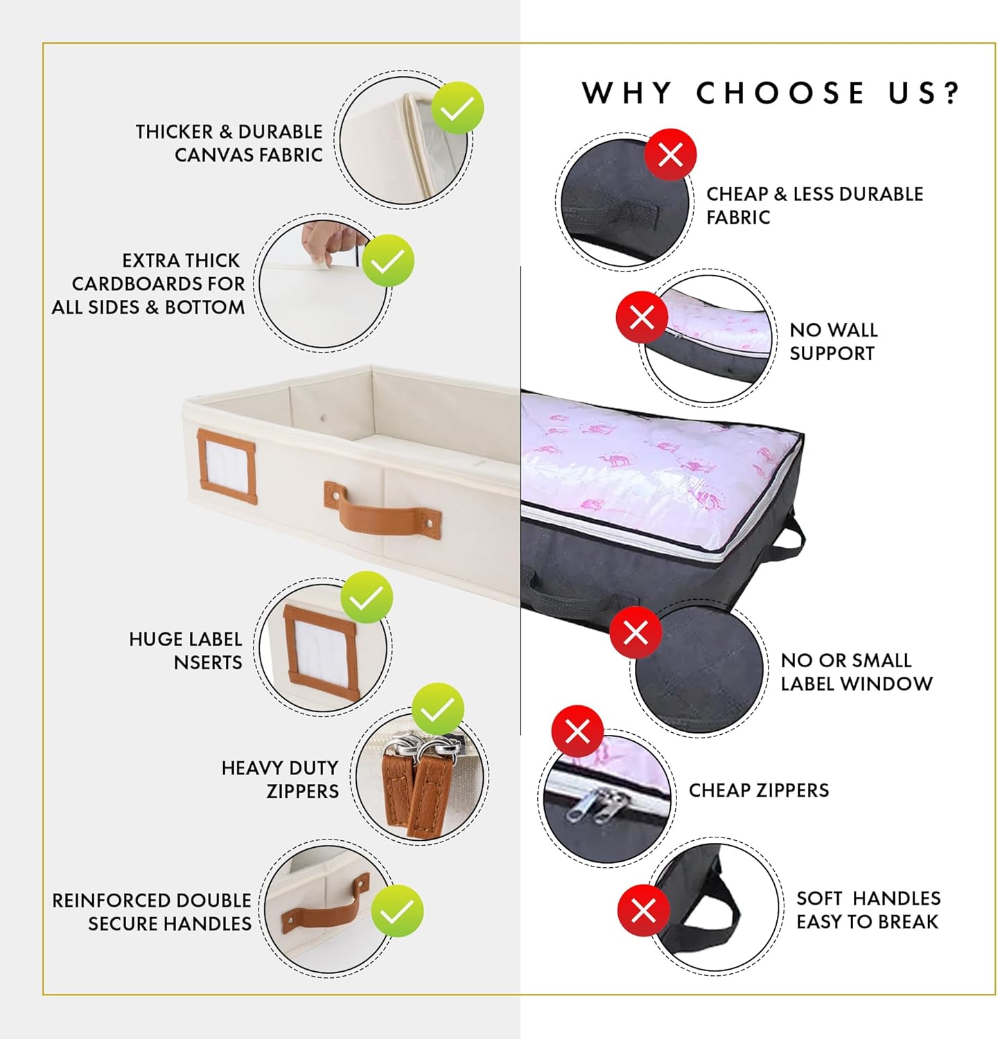 - šš®š©šš«š¢šØš« ššš§šÆšš¬ & ššššš«š¢šš„: Made from premium quality canvas fabric, our 23.5x12.5x5" Under Bed Storage Containers With Lids are durable, sturdy, & carefully designed to hold large quantities of clothes, blankets, shoes, & various bed accessories. These under bed storage dorm drawers are designed to fit perfectly under your bed for efficient bed room organization and storage, making it an under bed organizer that will easily blend into your home's aesthetic style.