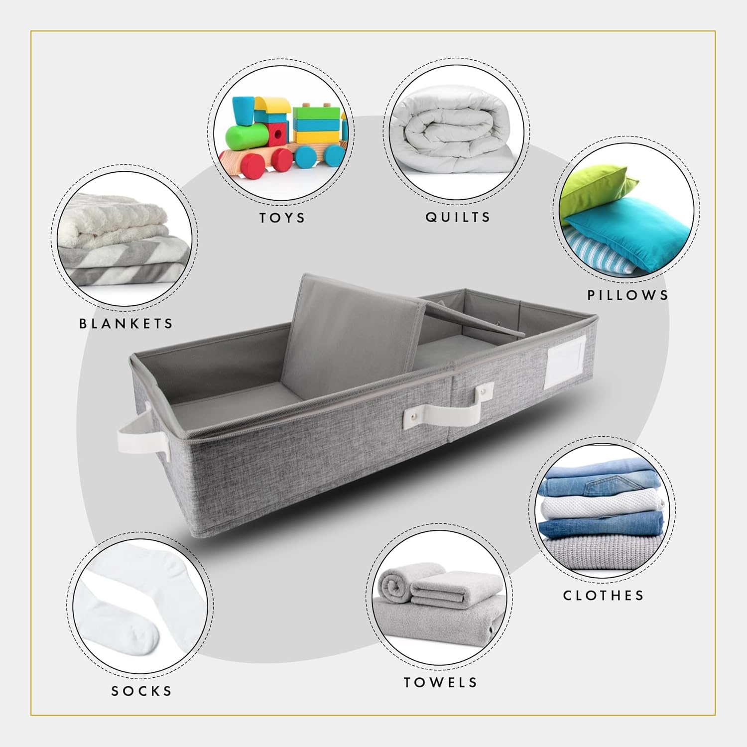 - šššš šššš¢šØš§š¢š šš„šØšš” ššššš«š¢šš„: Made from premium quality fabric, our 23.5x12.5x5" Under Bed Storage Containers With Lids are durable, sturdy, & carefully designed to hold large quantities of clothes, blankets, shoes, & various bed accessories. These under bed storage dorm drawers are designed to fit perfectly under your bed for efficient bed room organization and storage, making it an under bed organizer that will easily blend into your home's aesthetic style.