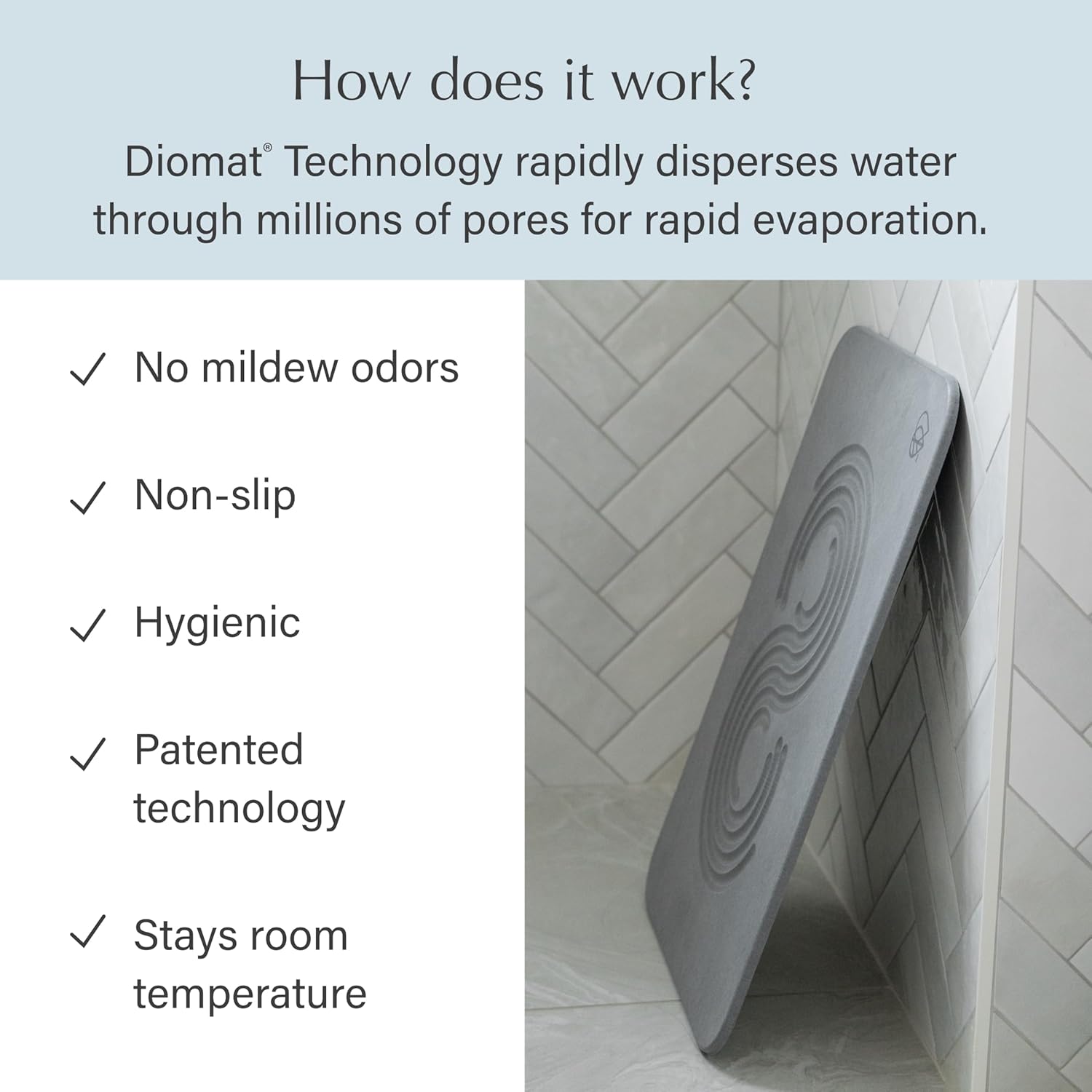 - QUICK-DRYING DIATOMACEOUS EARTH: Our Diatomaceous Earth Stone Bath Mat absorbs up to 150% of its weight in moisture that evaporates within seconds. This ceramic-like material feels like natural stone, offering a hygienic and durable alternative to traditional bath mats.