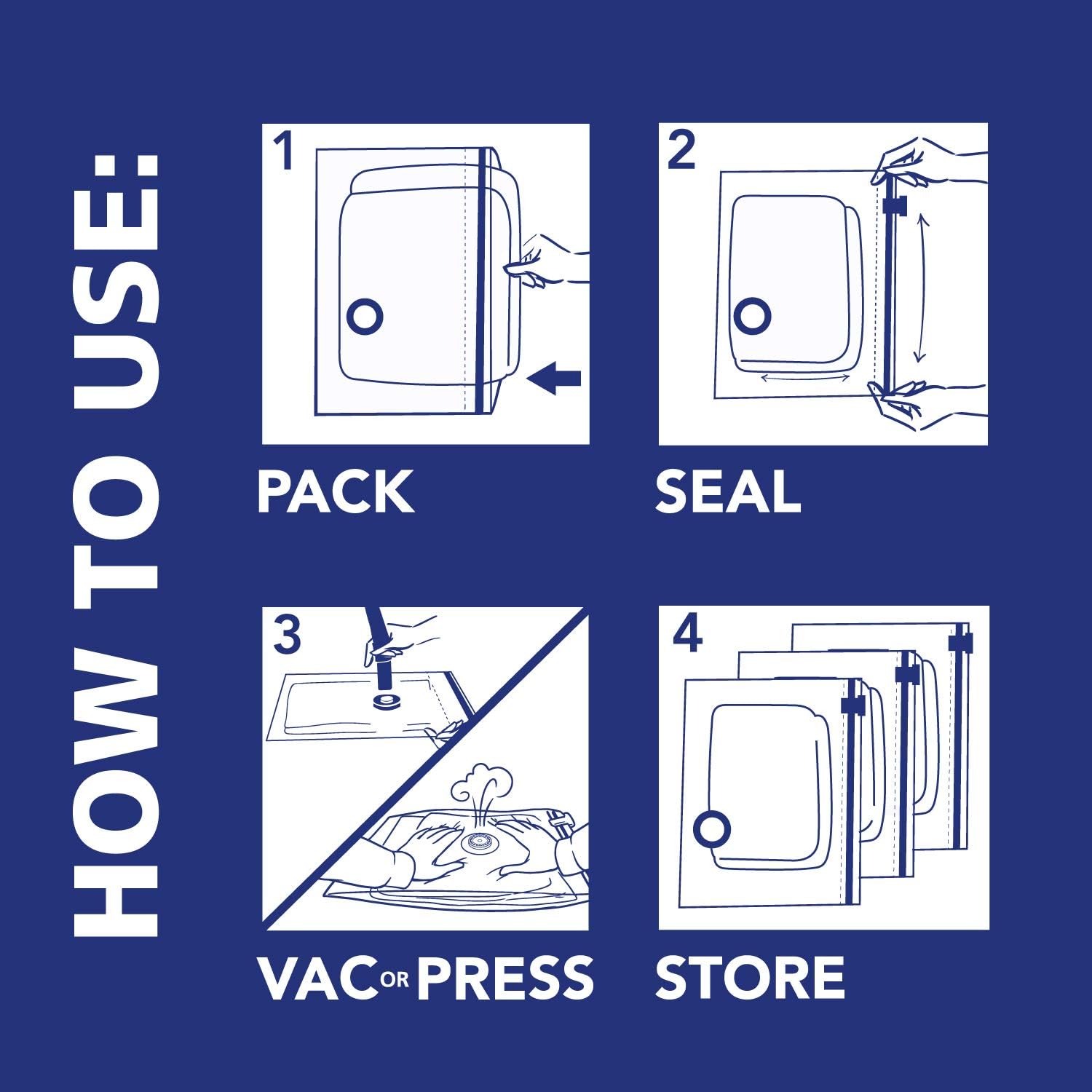 - Easy to Use: These bags feature an intuitive closure system that creates an easy air-tight seal, just Pack, Seal, Vac (or Press) and Store