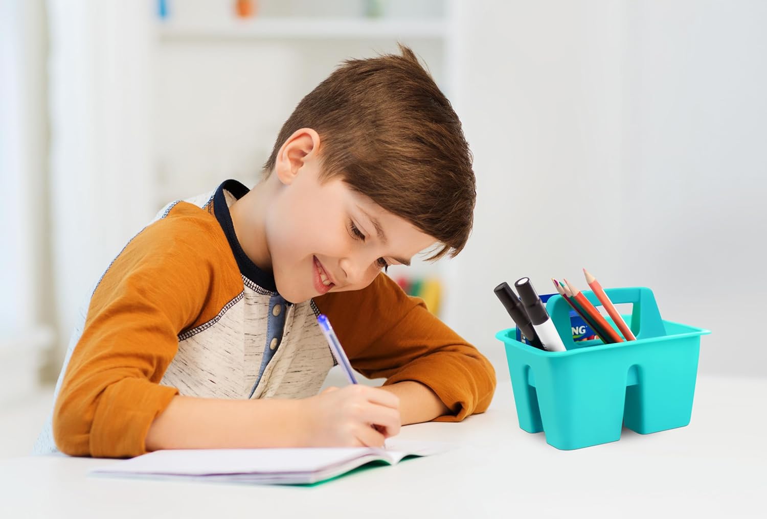 Storex Mini Classroom Caddy, Multipurpose Classroom Organizer with Handle, Teal, 12-Pack (01065U12C)