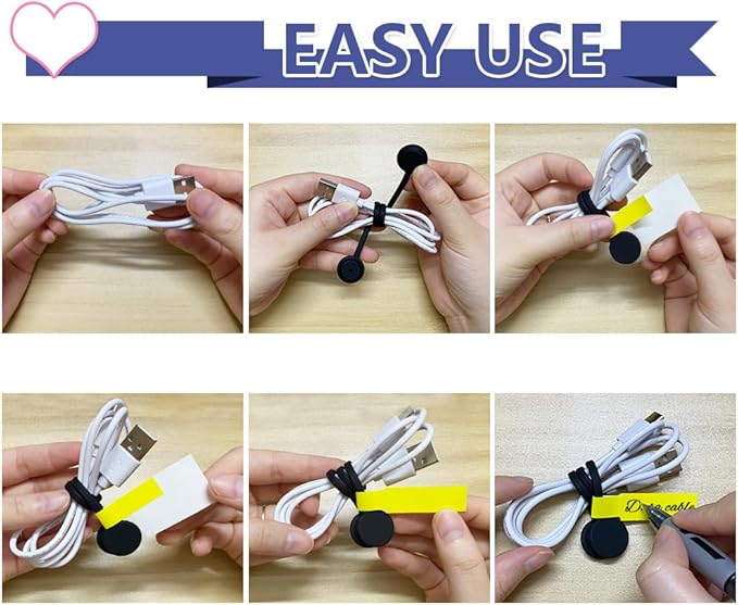 - ◎Organize And Mark — The "over-under" wrapping method, using magnetic cable clips, ensures your cords stay neatly wrapped and without tangles. Comes with 10 piece tags for you to distinguish the different wires.