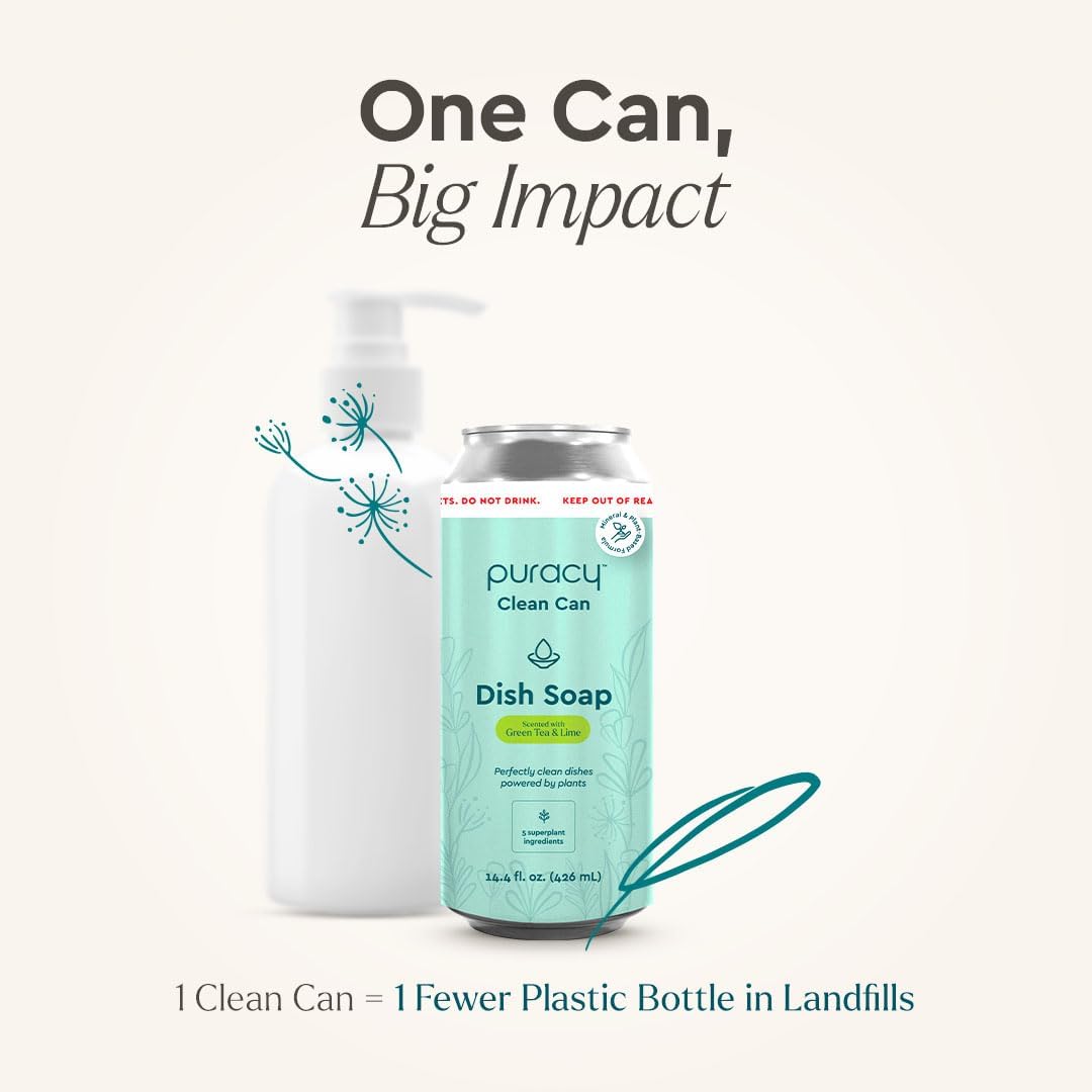 Puracy Natural Dish Soap Clean Can Starter Set - Plant-Based Dishwashing Soap, Non-Toxic Dish Soap, Natural Liquid Dishwashing Detergent Soap As Seen on TikTok (Green Tea & Lime, 14.4 fl oz)