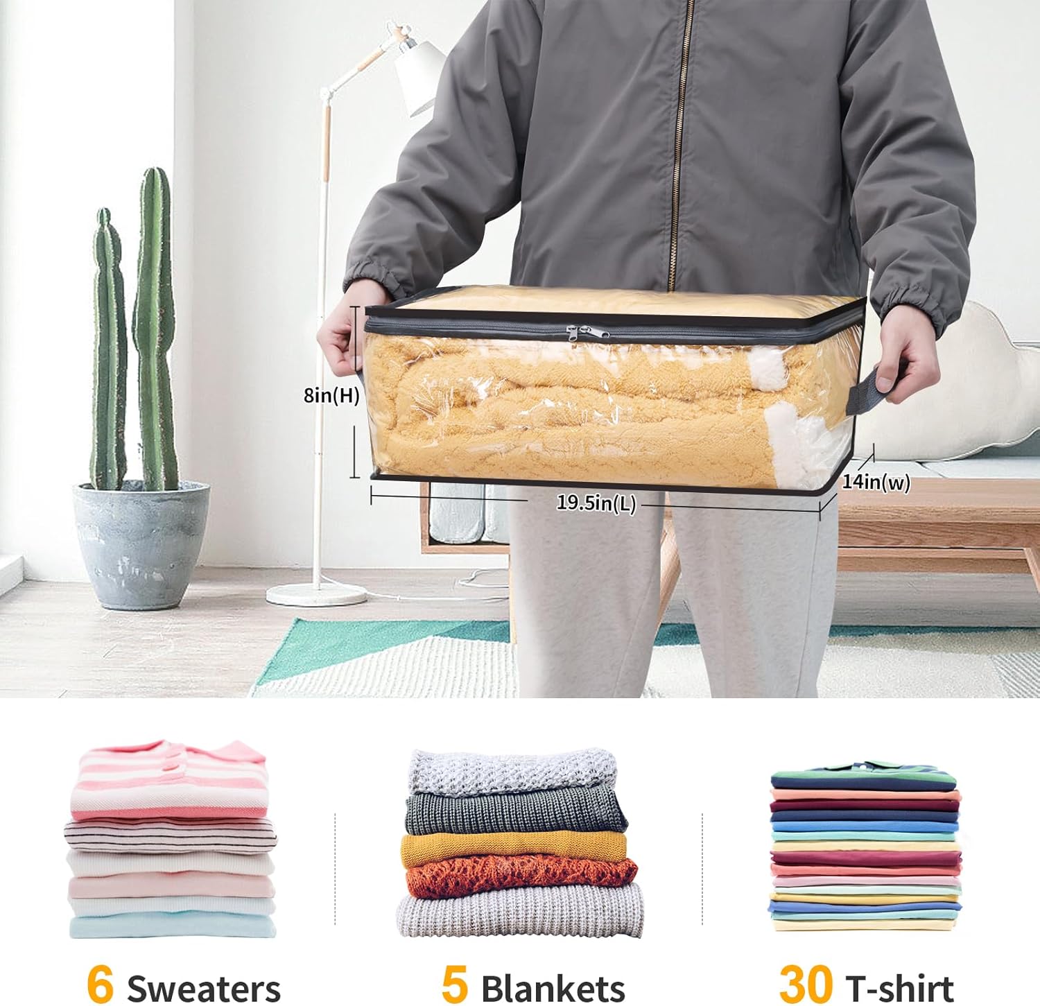 - Perfect Storage Bag: This set contains 4 gray 19.5x14x8 inch clear storage bags, each with a capacity of 35L (9.5 gallons), perfect for storing seasonal clothing conveniently in narrow closet or drawer spaces, on top of closet shelves or under the bed.