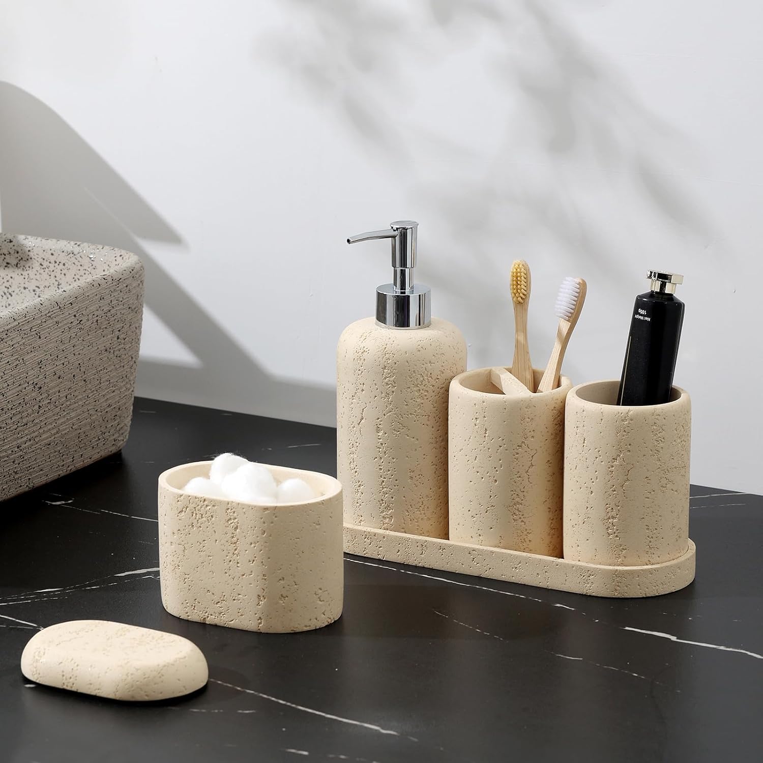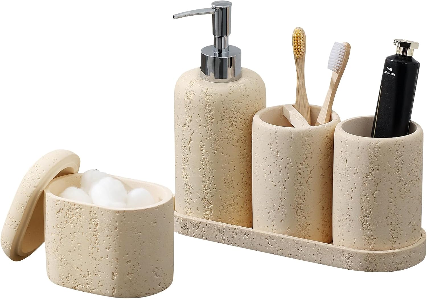 Bathroom Accessories Set, 5PCS Modern Bathroom Accessory Set with Soap Dispenser, Mouthwash Cup & Toothbrush Holder, Qtip Holder, Tray