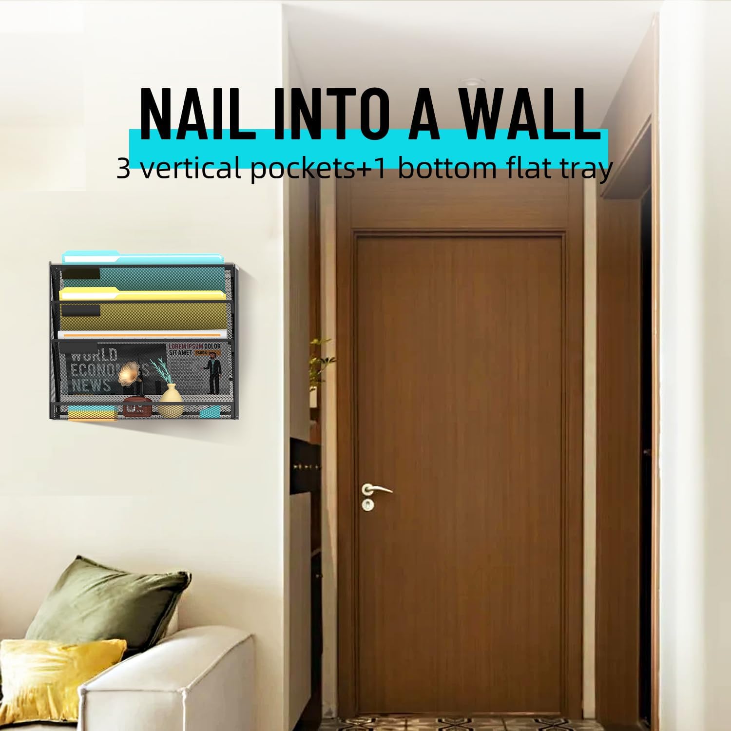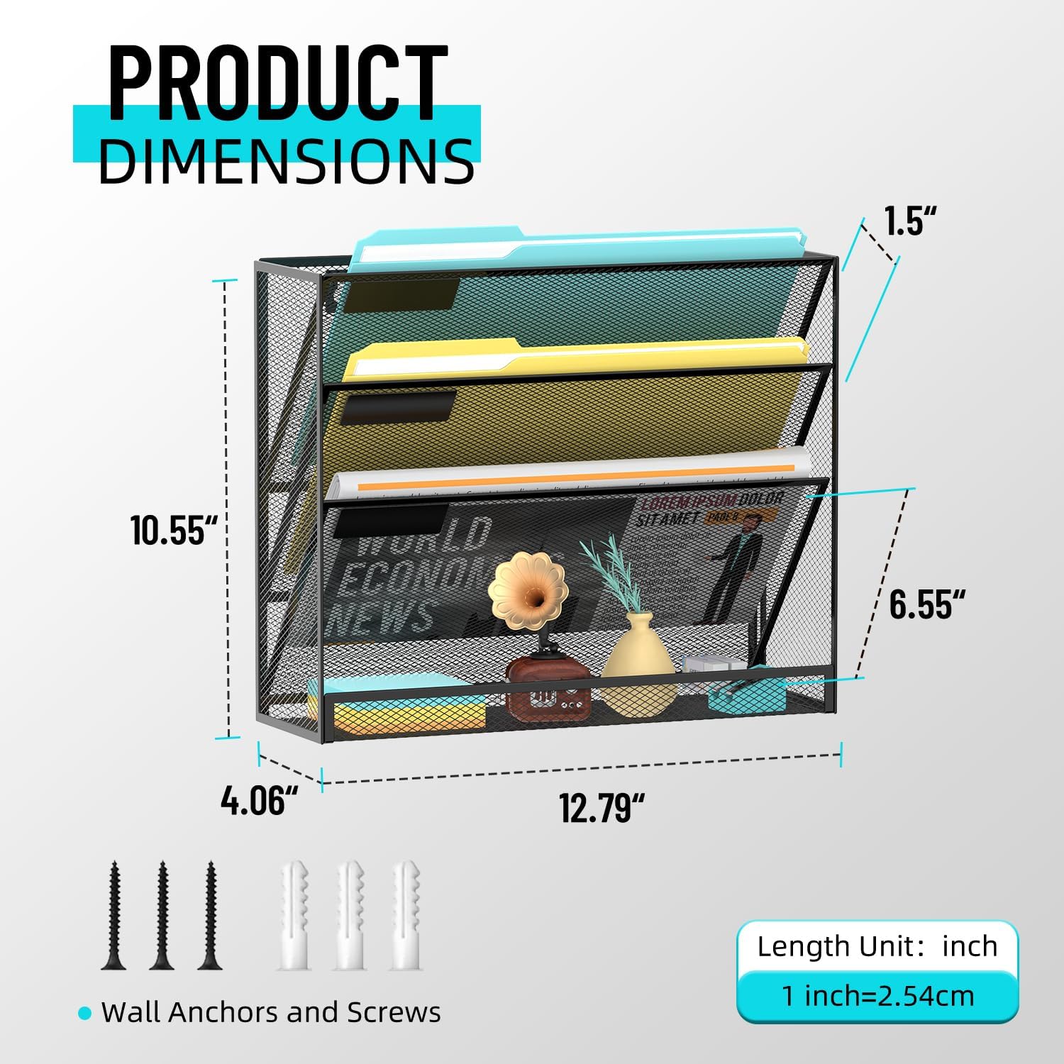 - [Save More Space] This wall file organizer has 4 separate cascading slots and has enough space to store your office stationery, such as holds letter-size charts and files, perfect for sorting organize notebooks, binders, file folders, literature, catalogs, mail, brochures, manilla envelopes and so on.