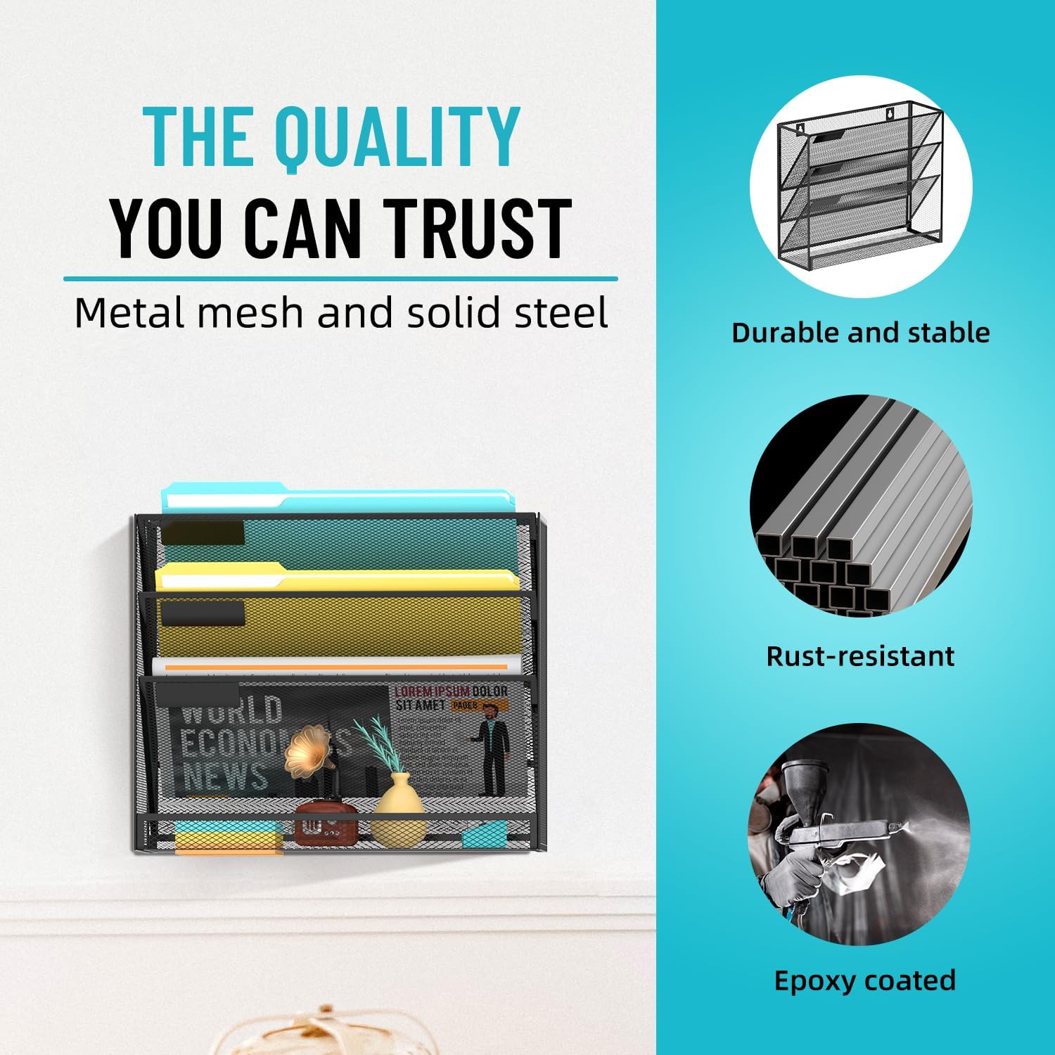 - [Sturdy Metal Structure] "Supeasy" hanging paper organizer is made of high-quality metal materials. This homework organizer has a powder coating, oxidation resistance and rust prevention, effectively prolonging its service life.