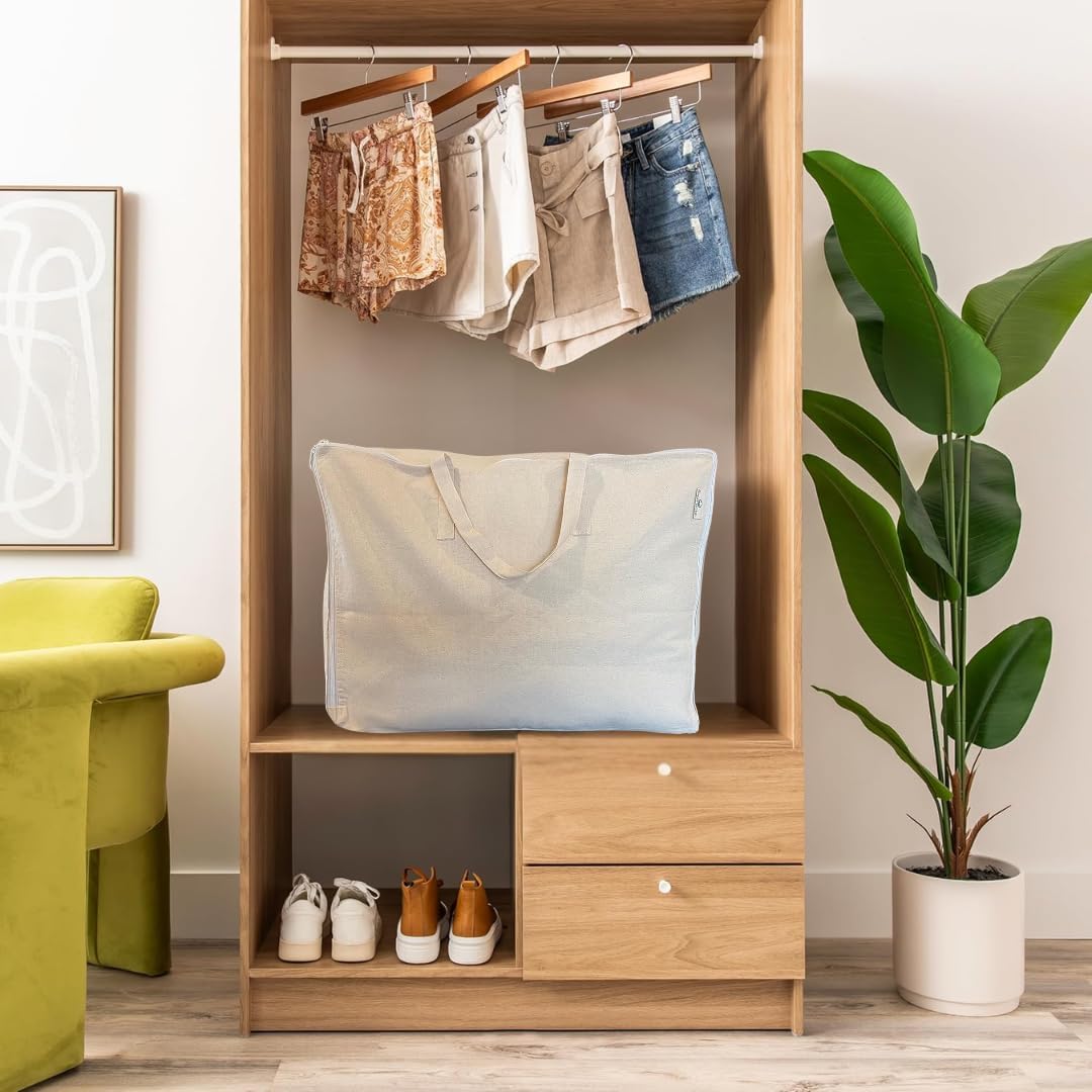 - DURABLE STORAGE: Made from pure cotton canvas fabric, this bag provides durable and breathable storage for bedding and linens.