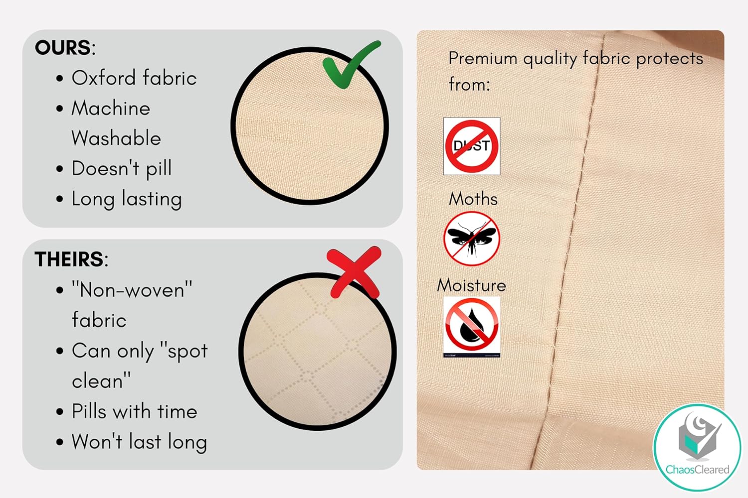 - ✅EASY LINEN/CLOTHING STORAGE - Simply fold and fill your items in our mold, dust, and insect proof bags; Our breathable oxford fabric is also machine washable
