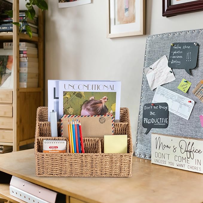 - Eliminate desktop clutter:Different sizes of compartments are enough to hold your daily office supplies, making your desktop look no longer cluttered. Suitable for storing books, magazines, newspapers, letters, notebooks, tapes, scissors, stationery, pens, remote controls, game controllers, etc., also suitable for children to store pen holders, markers, post-it notes and other small decorations.
