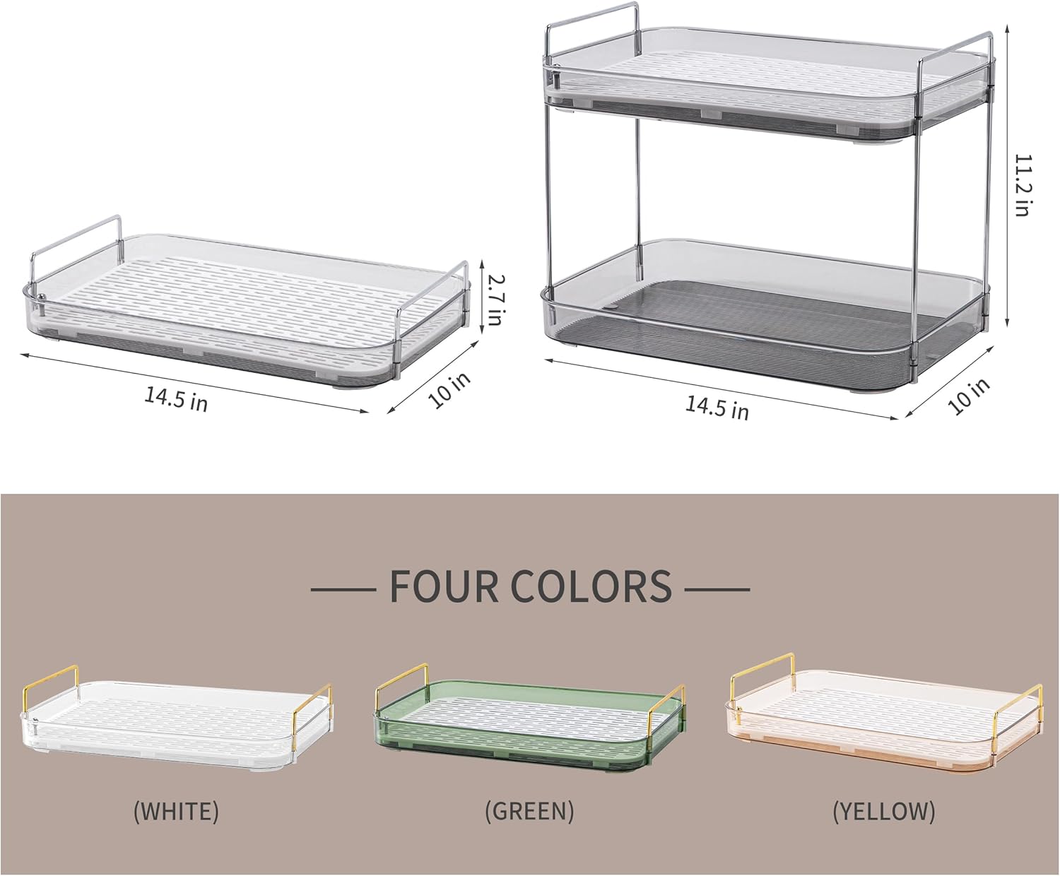 - 【Double usages】The draining board of the storage shelf is removable, which can be used as a normal organizer to store cosmetics, skincare, perfume, and spice on the vanity, bathroom and kitchen countertop, or added the draining board to drain glasses, fruit, toiletries, etc