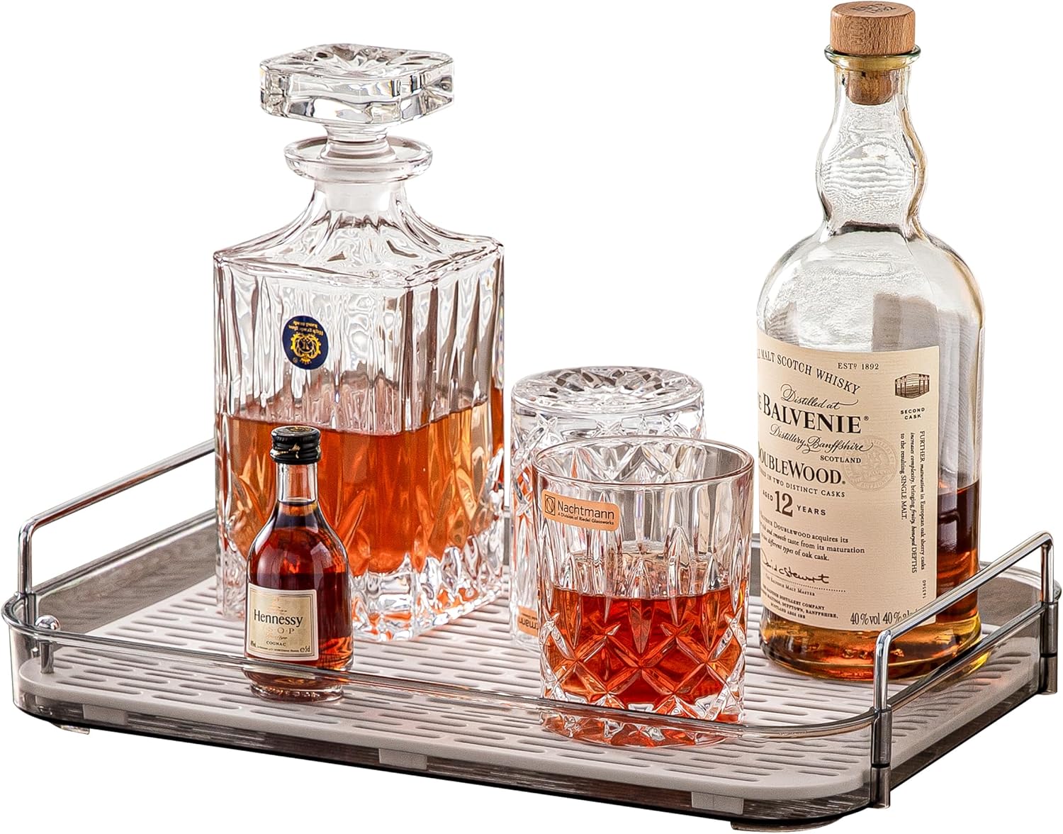 Coffee Bar Accessories,Station Organizers,Large Capacity Storage with Drain Board,Whisky Tray,Mug Tea Cup Holder Coffee Bar Organizer,Smoky Gray