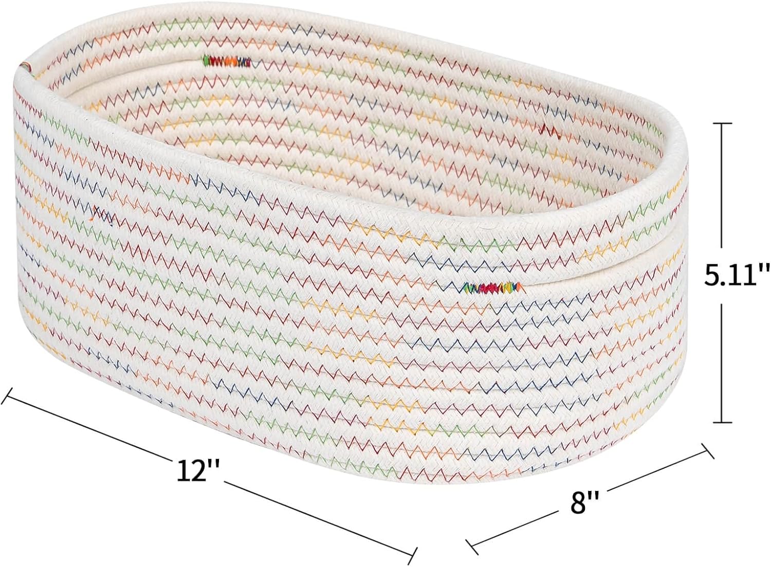CubesLand Small Woven Baskets,Cute Baskets or Shelf Set 2,Cube Organizer Basket Bin,Soft Toys Storage Basket,Baby Nursery Basket Bin,Home Decor 12"D x 8"W x 5"H Rainbow Stitches