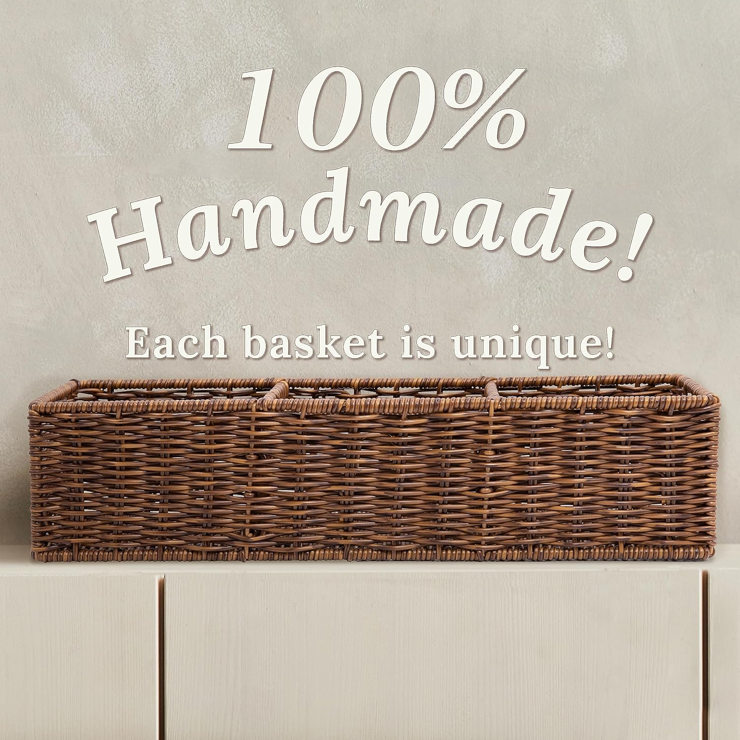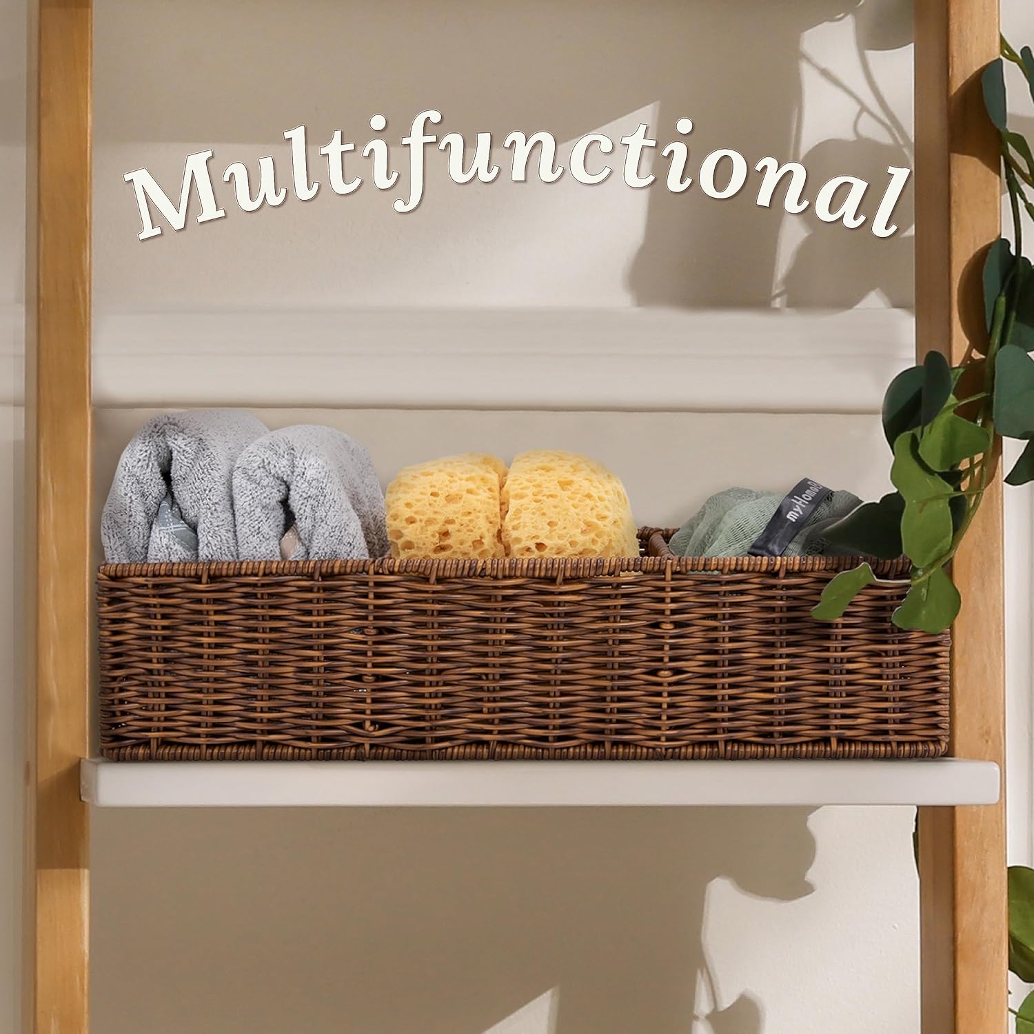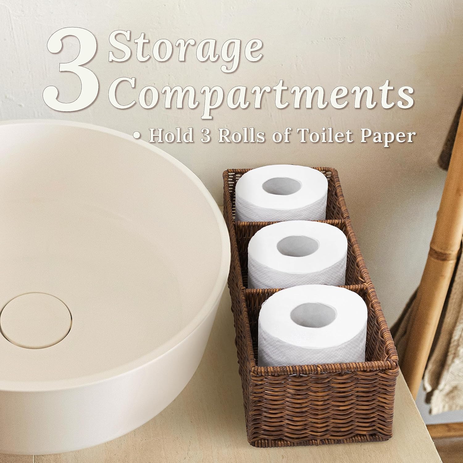 Wicker Basket with 3 Compartments, Toilet Storage, Bathroom Organizer Countertop, Resin Wicker 1pc, Toffee