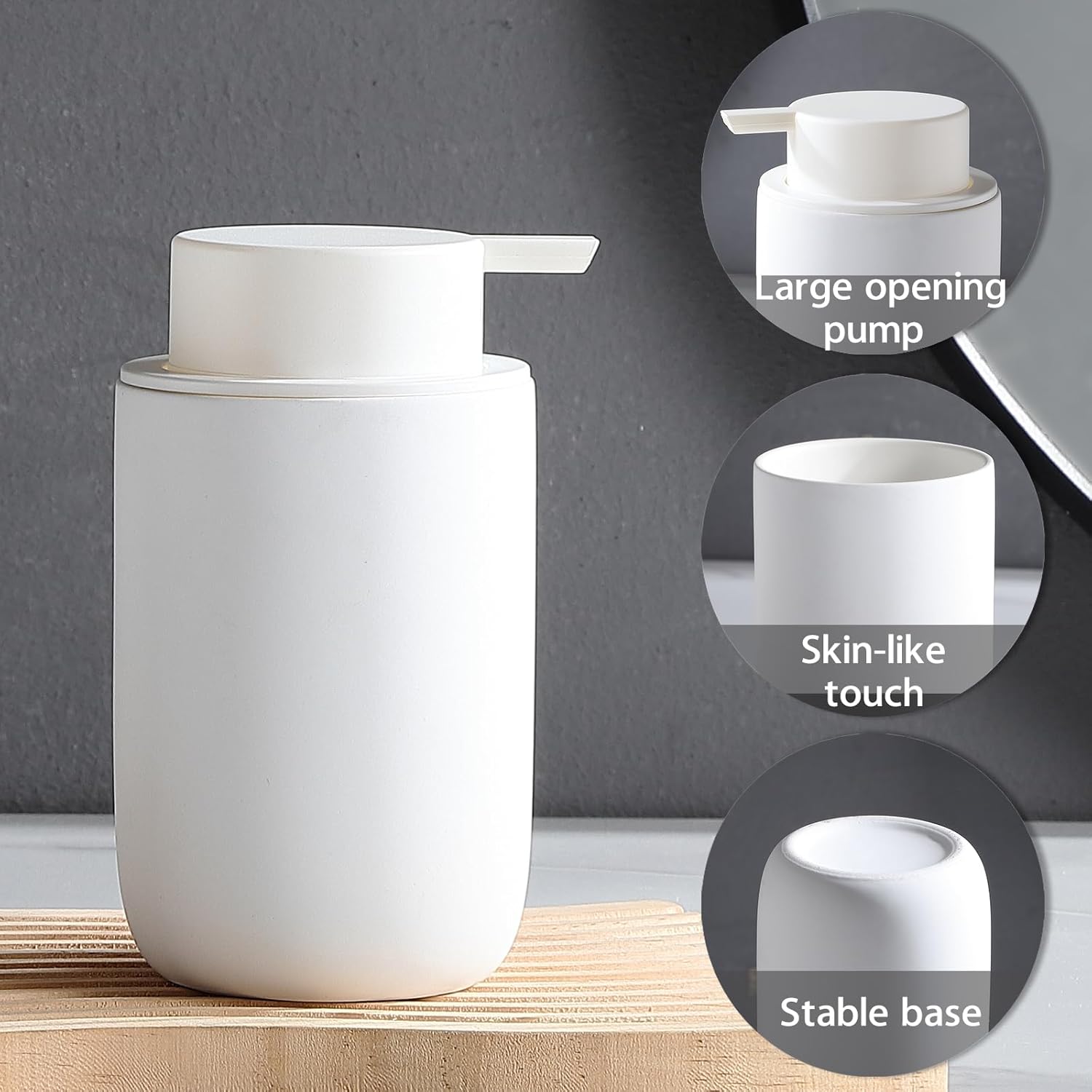 White Soap Dispenser Set- Modern Ceramic Hand Soap Dispenser for Bathroom Refillable Liquid Hand with Soap Pump for Liquid Soap for Farmhouse Kitchen Bathroom Decor 2 Pack