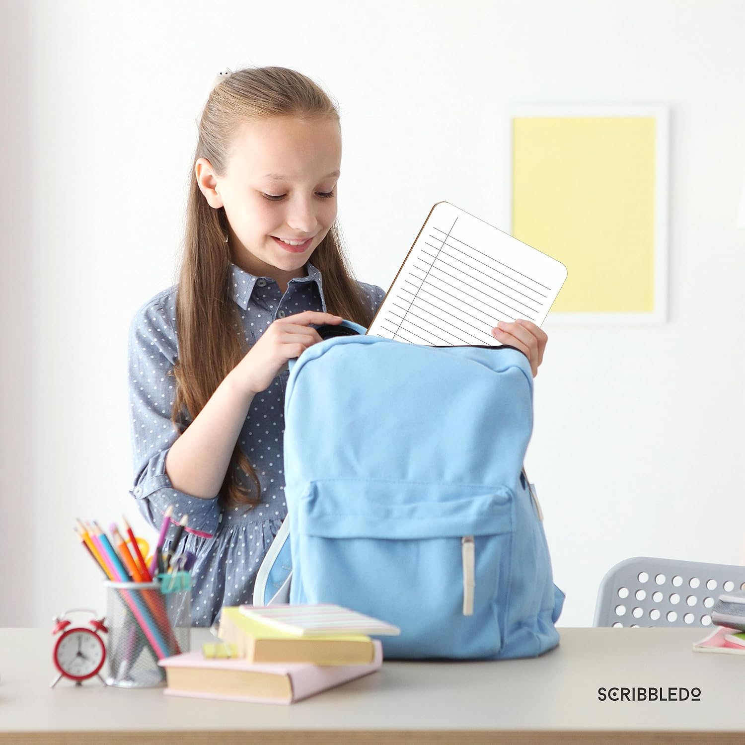 SCRIBBLEDO Dry Erase 5"x7" Mini Notebook College Ruled Lined Board 2 Pack Reusable Erasable Writing Note Pad Lapboard Blank Whiteboard on Reverse for Desk