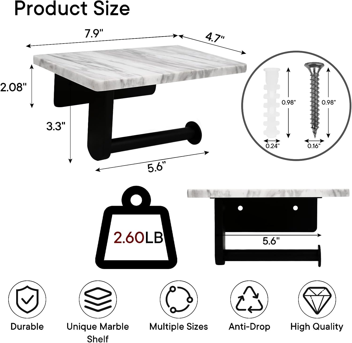 - 【Toilet Paper Holder with Shelf】 The toilet paper holder with storage is Heavy,sturdy and durable, unique design, smooth marble edge for safety, easy to clean and suitable for wet environments without rusting.