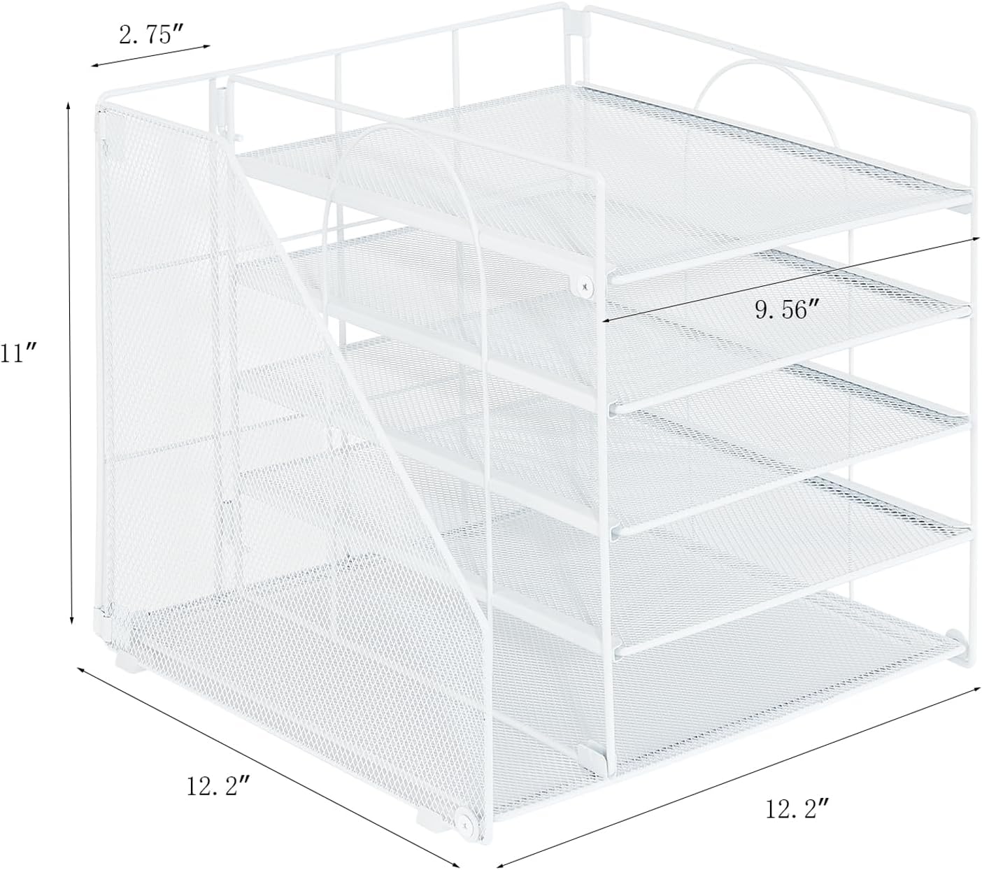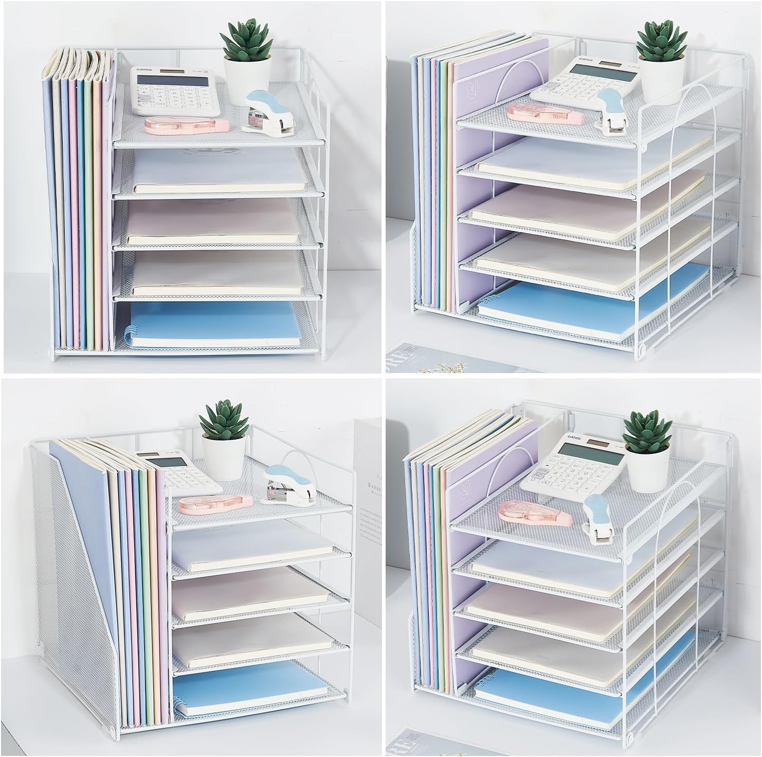 Desk Organizers and Accessories, 5-Tier Paper Letter Tray Organizer with File Holder, Desktop Organizer for Office Supplies (White)
