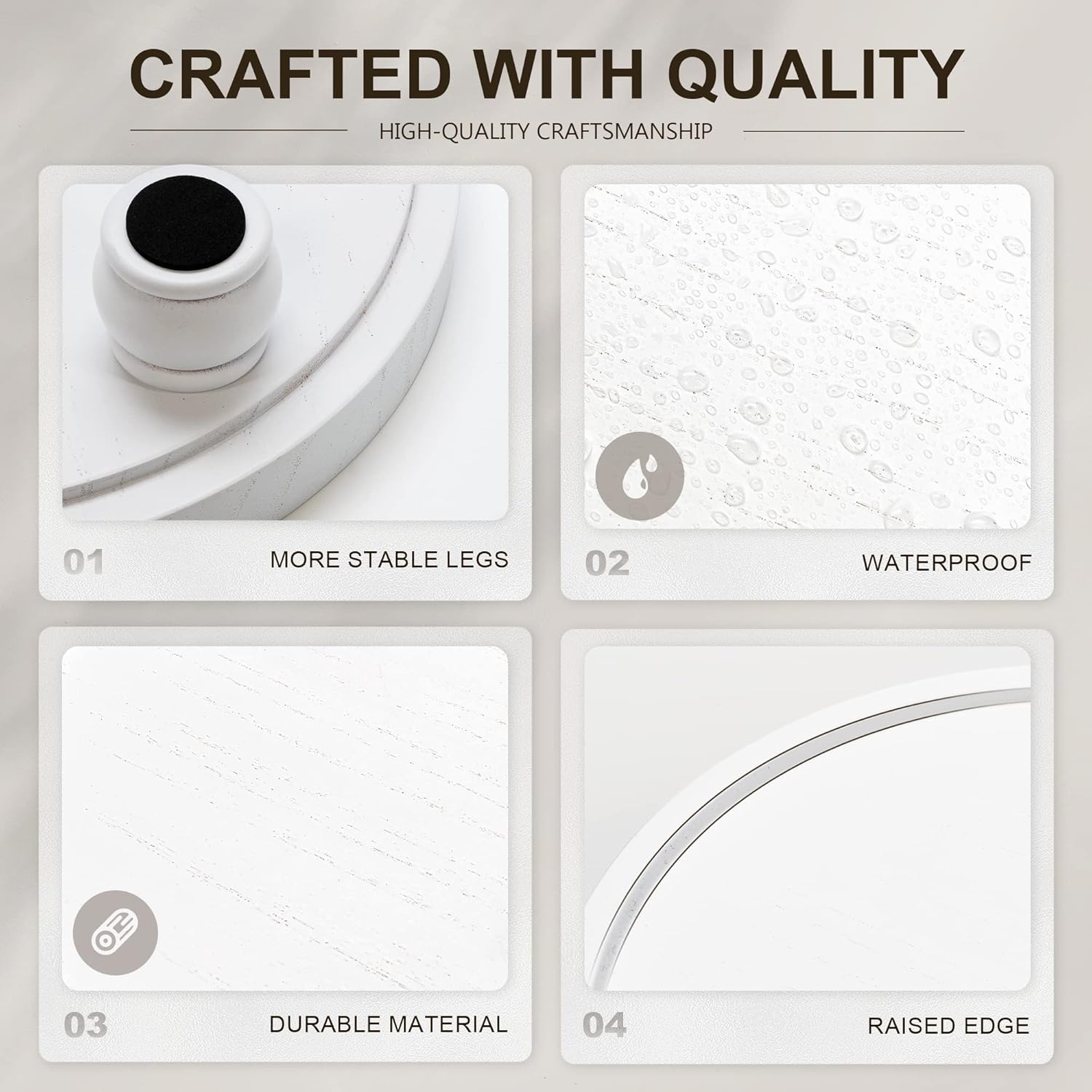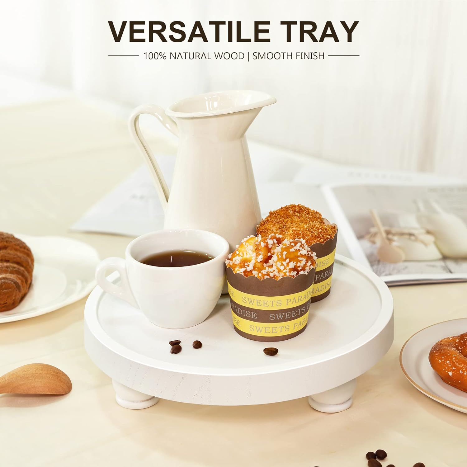 EOSAHR Decorative Wooden Riser for Home Decor : Farmhouse Display Stand for Kitchen Counter, Bathroom Sink and Home Decor - Rustic Round Waterproof Pedestal Tray for Soap, Plant Holder (White)