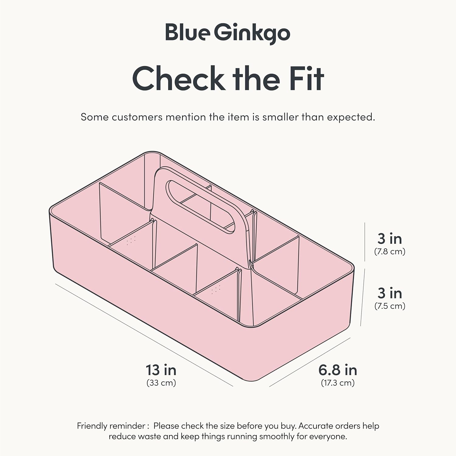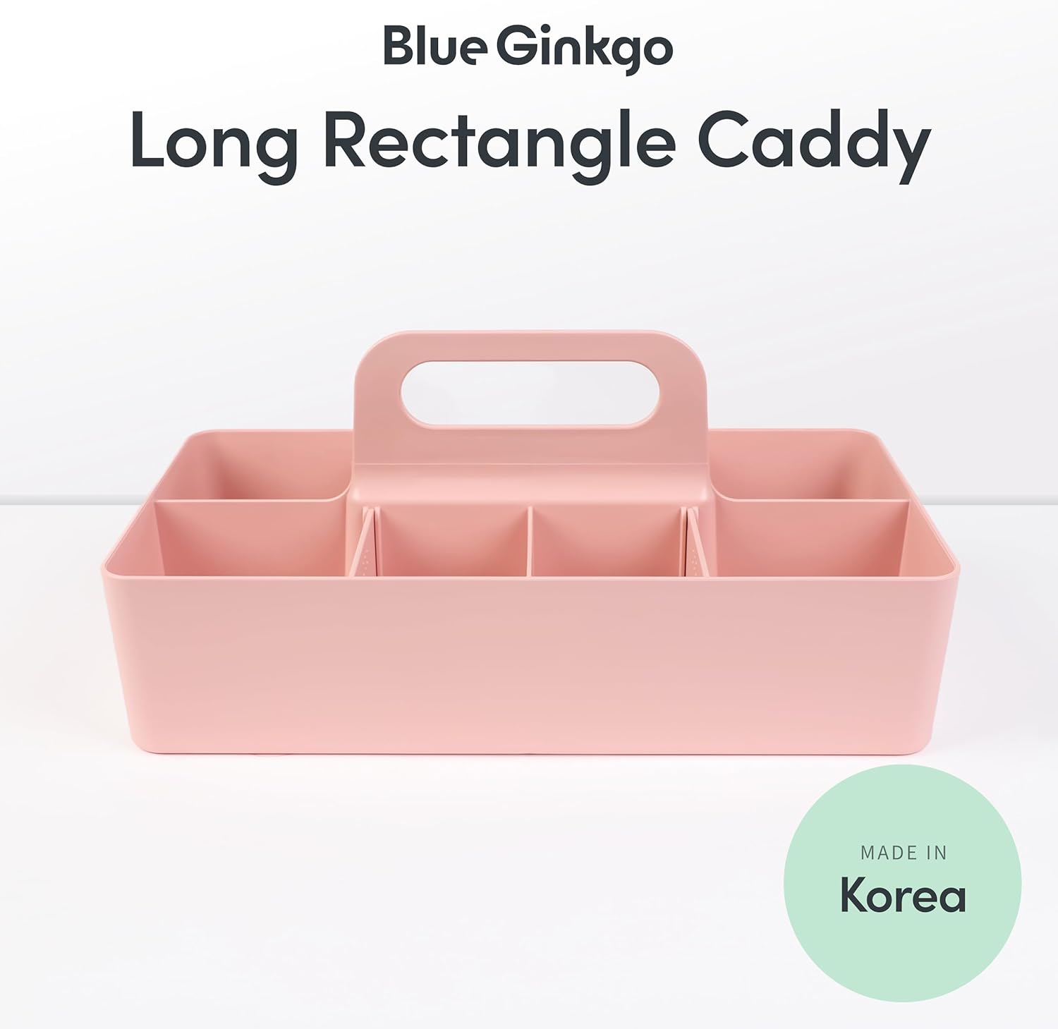 BLUE GINKGO Stackable Organizer Caddy – Korean-Made Portable Tote for Bathroom, Office, Crafts, or School Supplies (Long Rectangle, Pink)