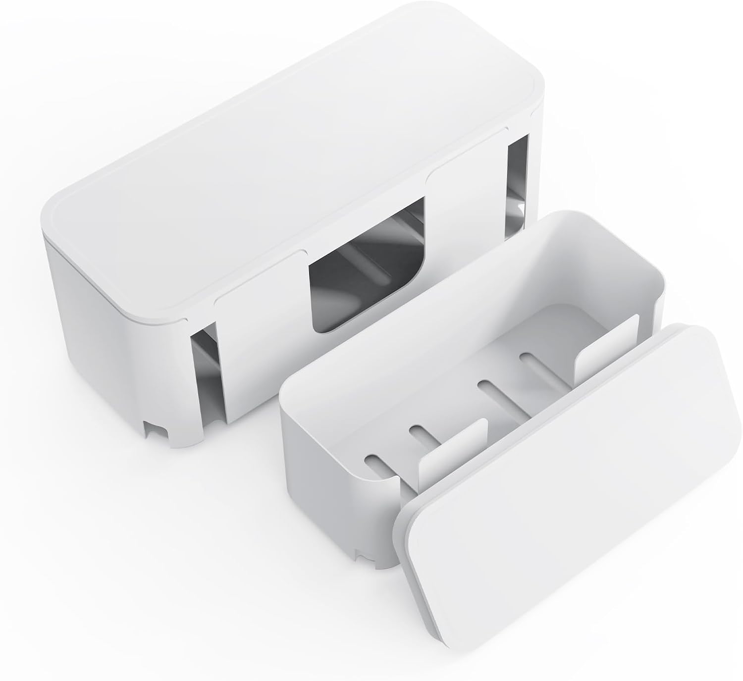 Cord Organizer Box, Cable Hider for Power Strips, Surge Protector, Extension Cord and Wire Management, Cable Management Box (2PCS/Large and Medium Size/White)