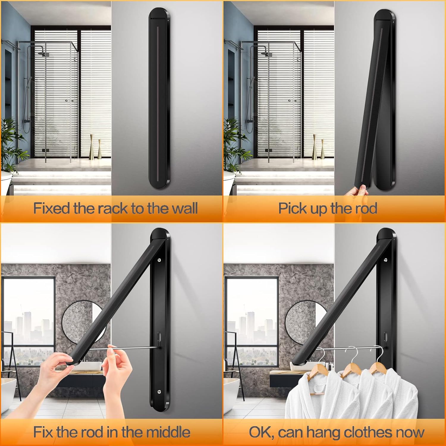 - Maximizes space: This clothes rack is wall-mounted, ideal for small spaces. It's foldable and retractable, making it ultra thin and perfect for efficient space saving.