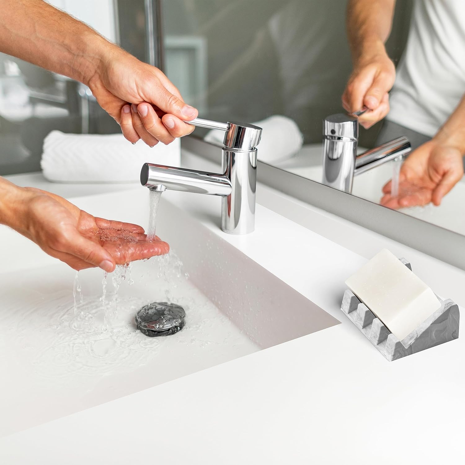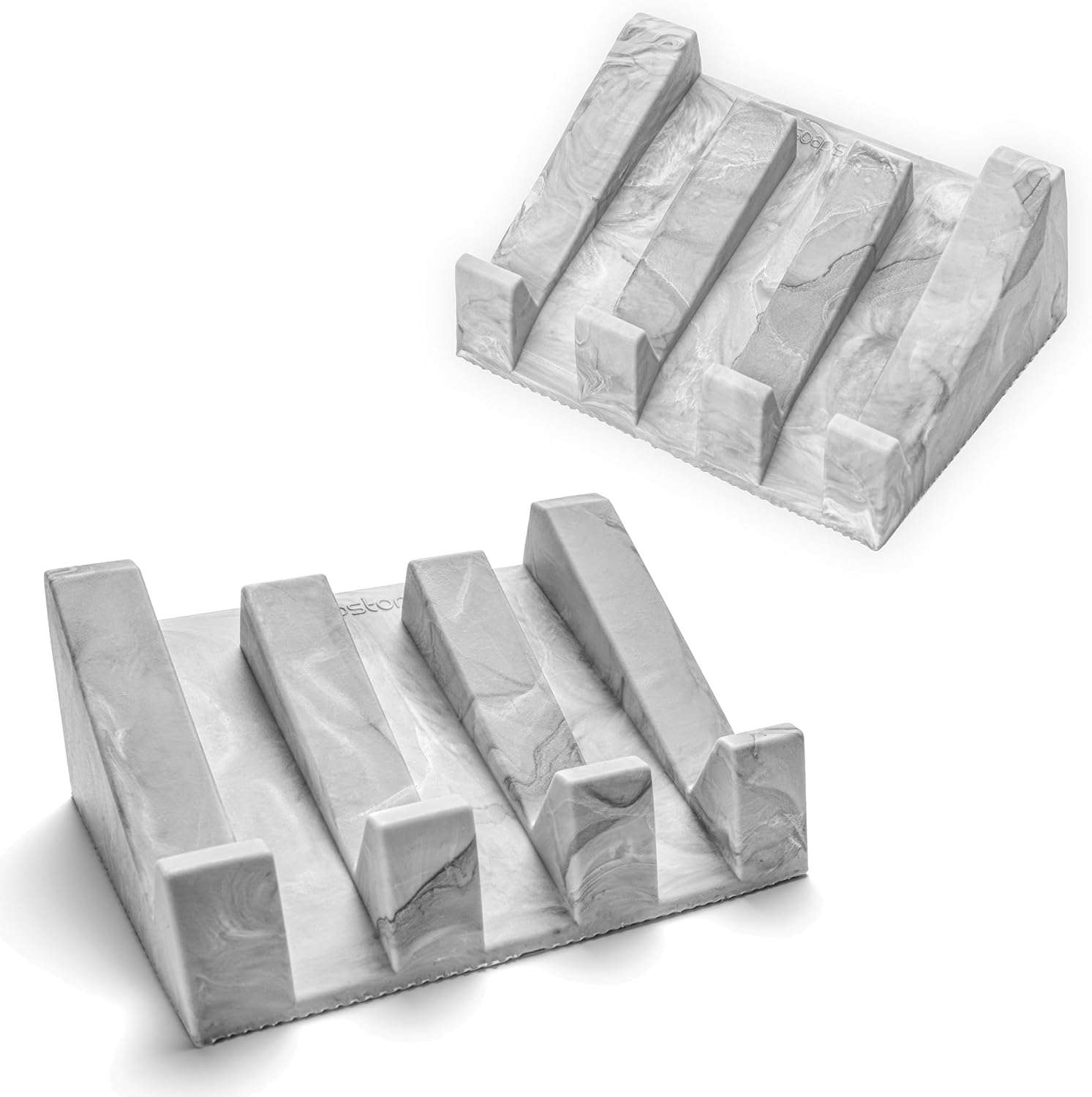- USA Patented Elevated Design - The original USA patented self draining waterfall design that will dry soap bars fast! Each marble design is unique, and no two silicone dishes are the same! No more mushy soap sitting in a pool of water. This exclusive 2-pack white grey marble swirl design is designed with several drain spouts for water to flow out quickly!