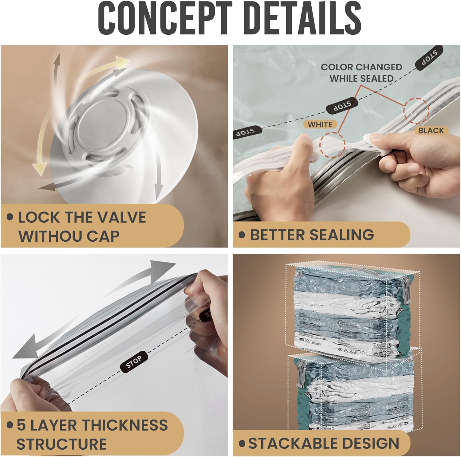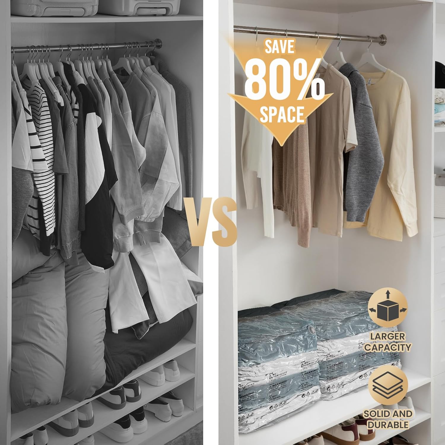 - Save More Space: Our jumbo vacuum storage bags have trapezoidal three-dimensional structure. The stable bottom layer is easier to place when storing clothes, and the storage capacity of vacuum storage bags for comforters and blankets is larger. We focus on providing you with cozy and better home life by better organizing your clothes and sorting your bedding