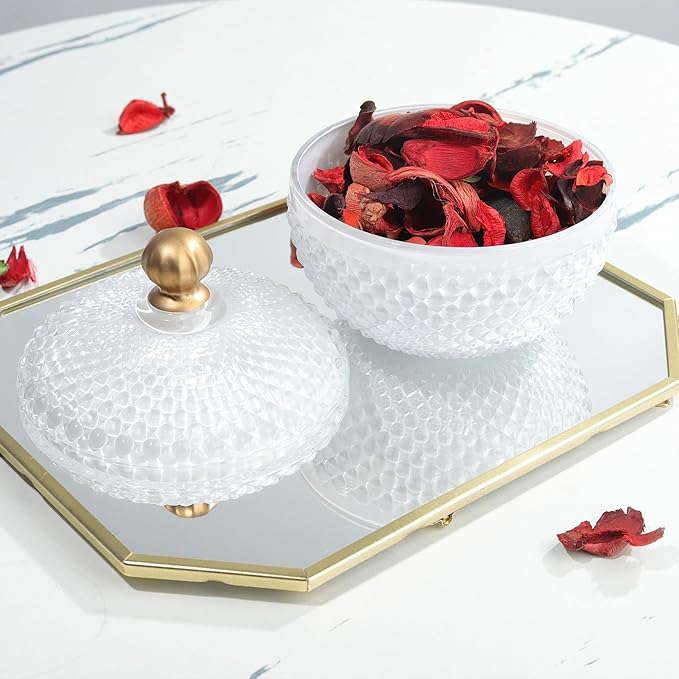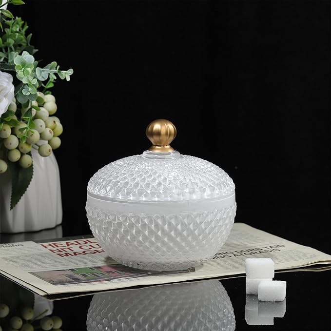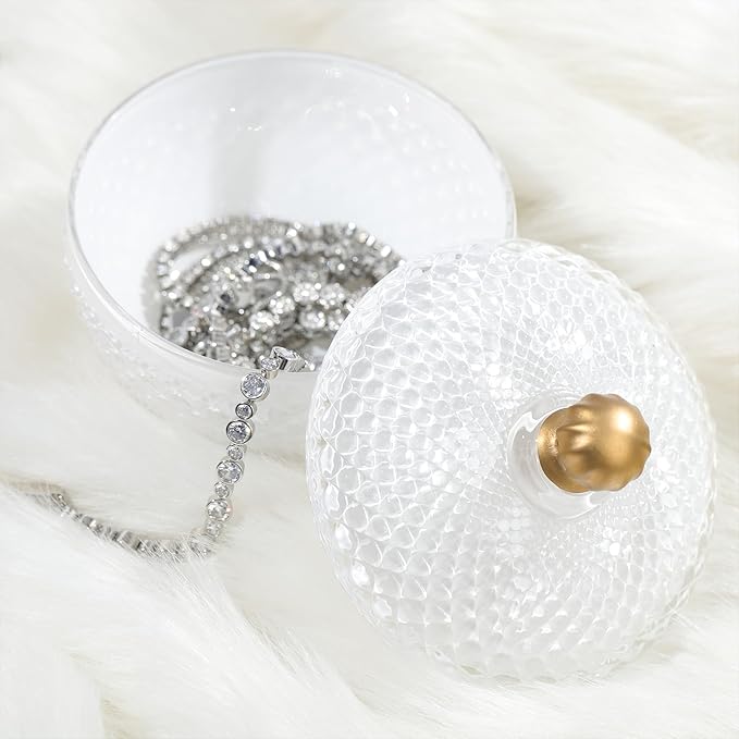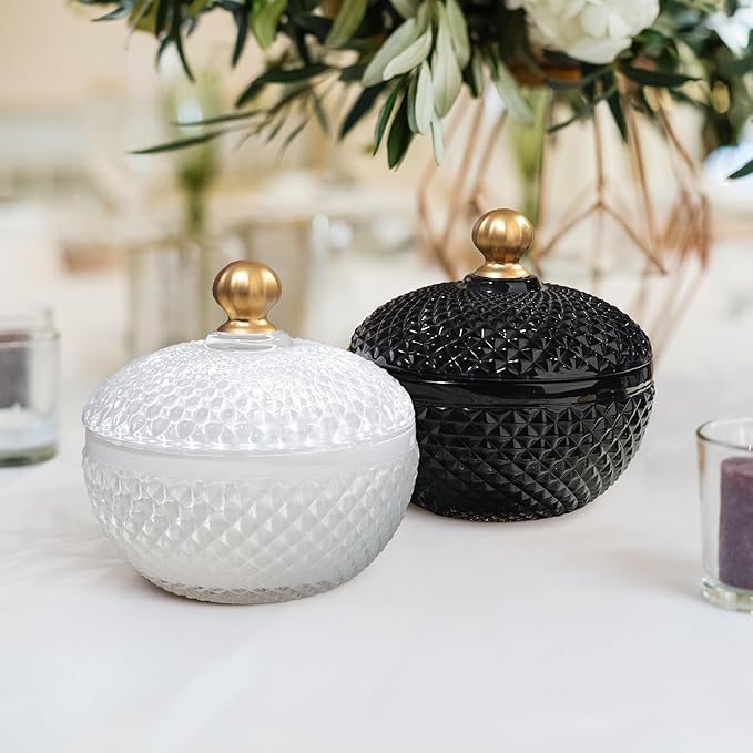 Joeyan 12 oz Small White Glass Jars with Lid,Embossed Glass Candy Dishes,Diamond Faceted Food Container,Decorative Jewelry Box Apothecary Canisters,Colored Kitchen Bathroom Buffet Storage Organizer