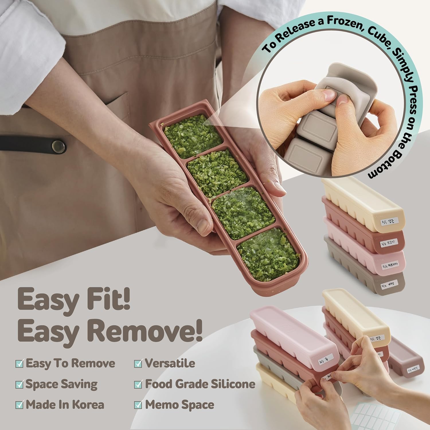 - Slim and Compact Design: These silicone freezer containers are available in 4, 6 or 12 compartments, featuring a stackable, ultra-slim and ergonomic design for easy storage. The ultra-wide area which receives cold air ensures a faster freezing process of the contents!