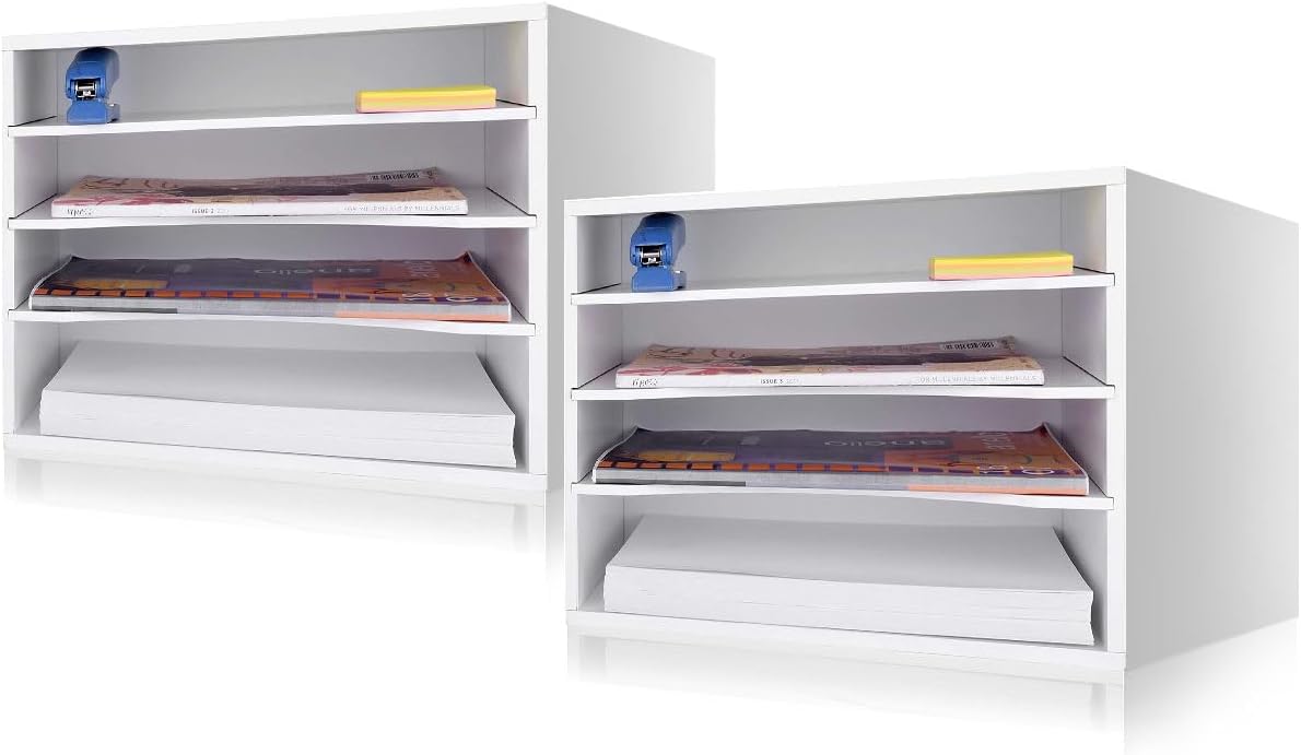 EMERIT Paper Organzier Wood Desktop Organizer Storage Letter Tray File Sorter with Adjustable Shelves for Home Office