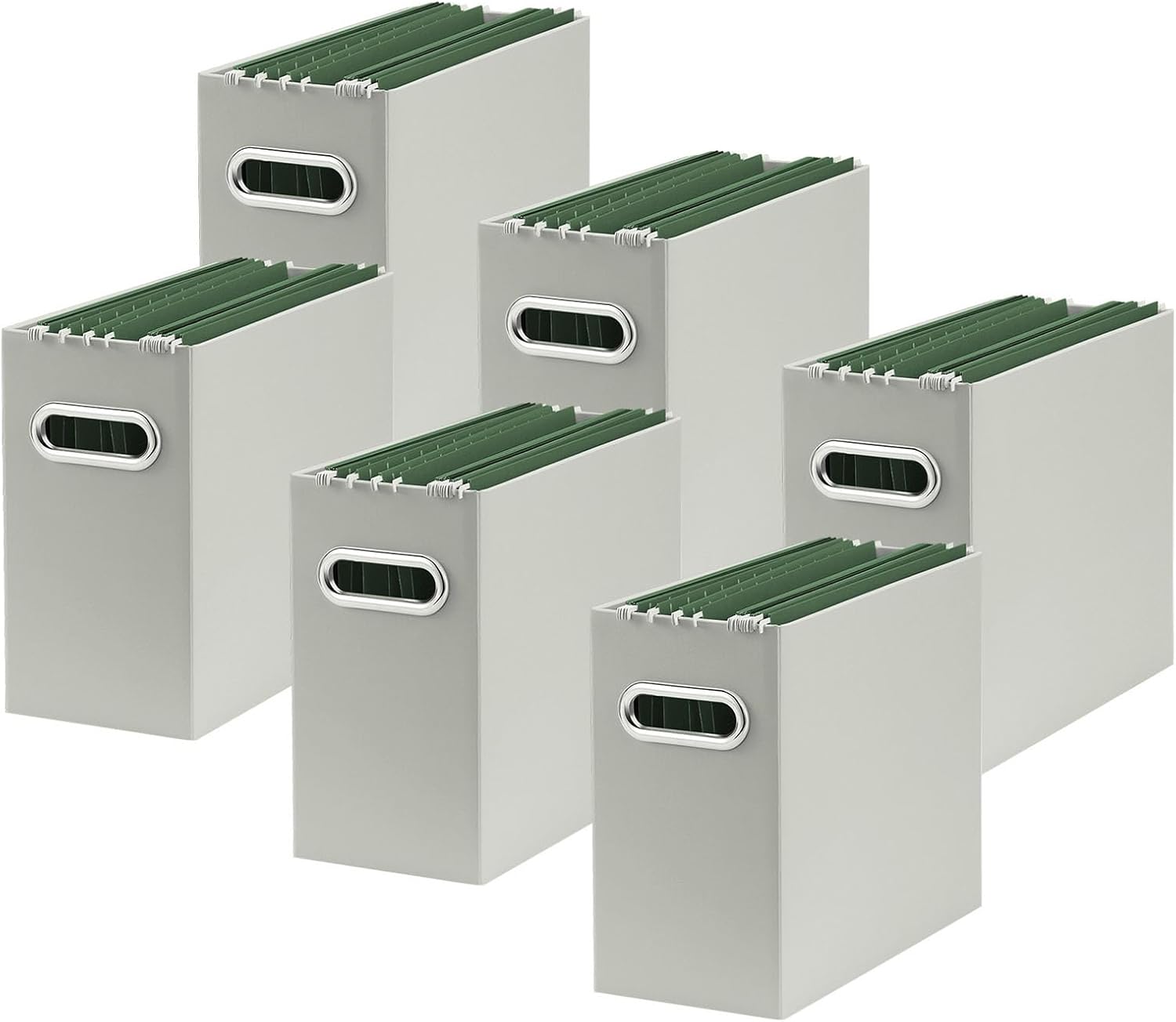 Oterri Cardboard File Organizer Box for Hanging File Folders Letter Size,File Box for Computer Desk,File Cabinet,Working Home,Office,Classroom (Grey, Letter Size - 6 Packs)