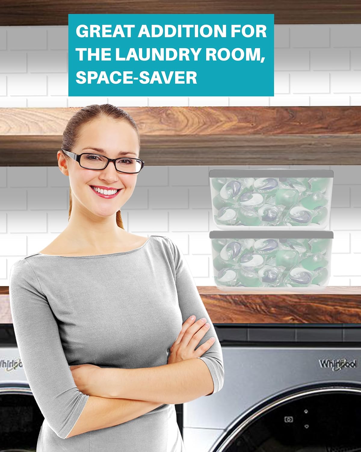 - [Count on Durability that Lasts for Years] Our sturdy laundry pod container with lid is made of high‑quality plastic that resists cracks and scratches. Built to handle everyday use, it keeps your laundry area looking clean and tidy.