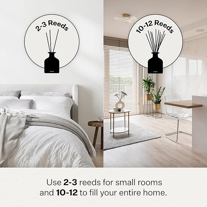 - How to Use: Flip the reed diffusing sticks around once a week to ensure a strong scent 24/7. We recommend 2-3 reeds for small rooms and 10-12 reeds to fill your entire home with a boost of fragrance.