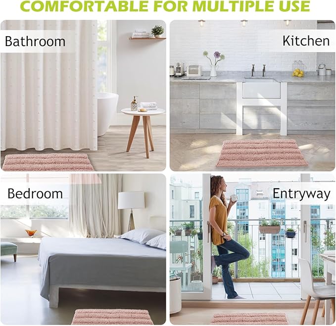 KGORGE Bath Mat for Bathroom - Soft Shower Rug Farmhouse Quick Drying Washable Absorbent Non-Slip Super Soft Chenile Bathtub Carpet Decorations for Family, Pink, 60 x 24, 1 Piece