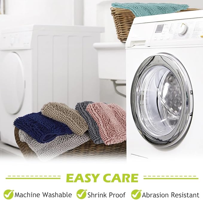 - WELL ABSORBENT - The mats are made of thick microfiber chenille fabric, which can soak up the water quickly while you're stepping out of the bath, shower. Also helps keep your room floor dry and clean.