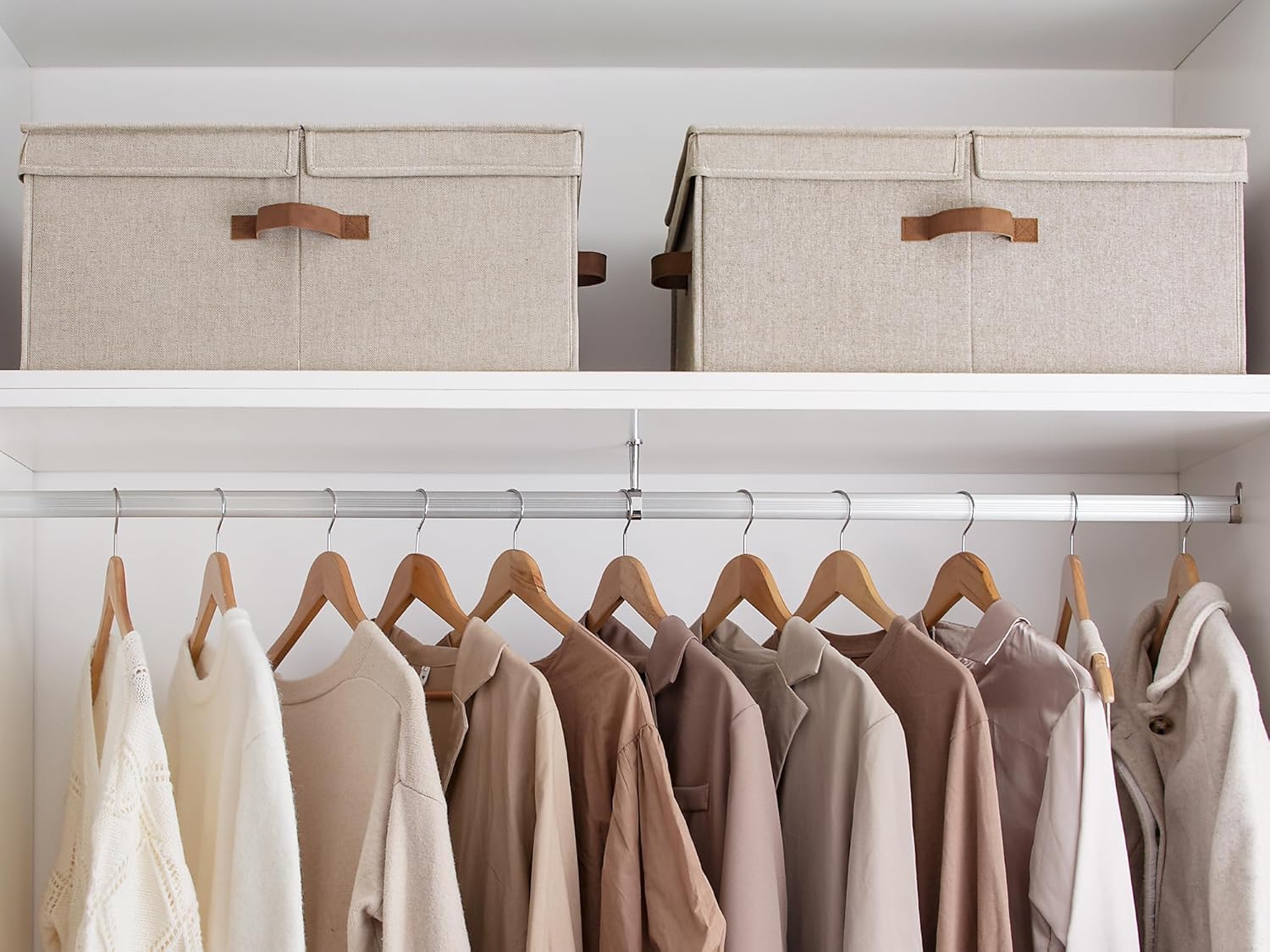 - Stackable & Foldable: With a sturdy structure, the storage baskets can be stackable and easy to assemble. The closet storage organizer is also collapsible for compact storage when not in use.