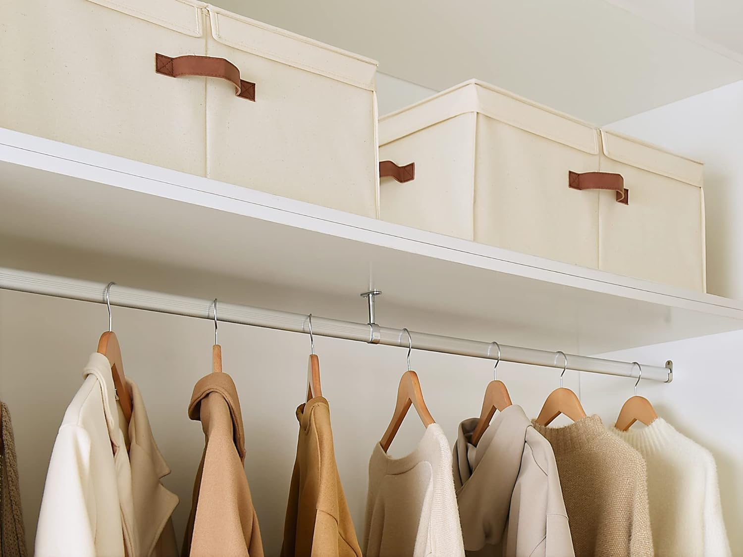 - Stackable & Foldable: With a sturdy structure, the storage baskets can be stackable and easy to assemble. The closet storage organizer is also collapsible for compact storage when not in use.