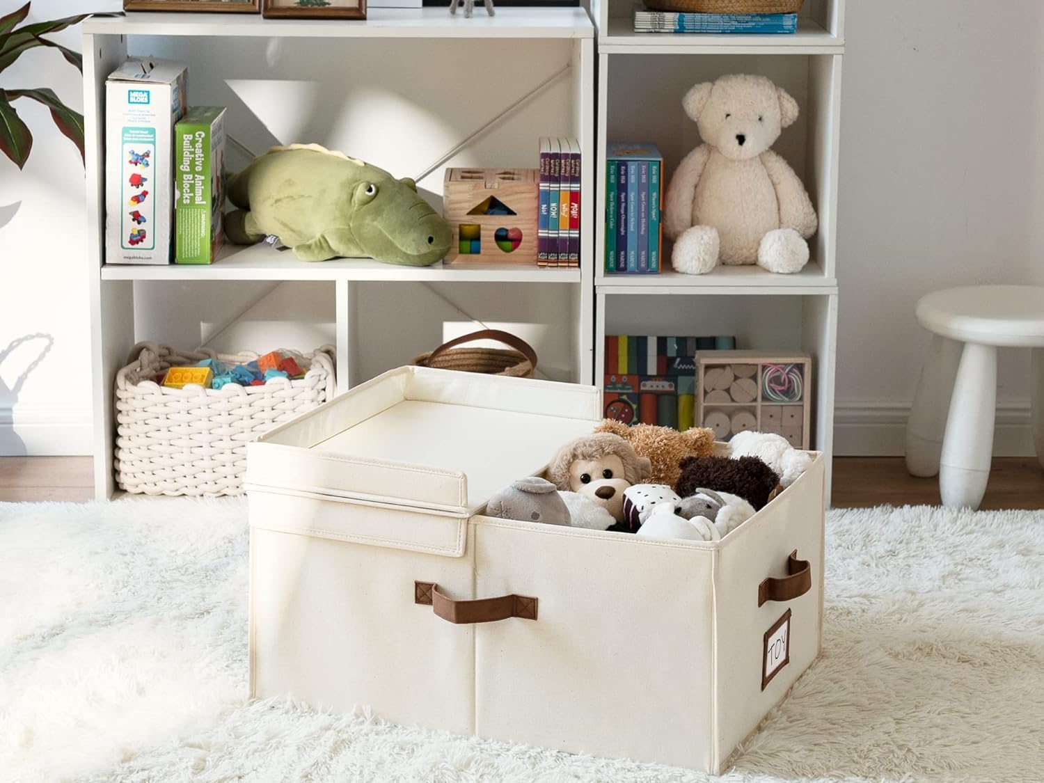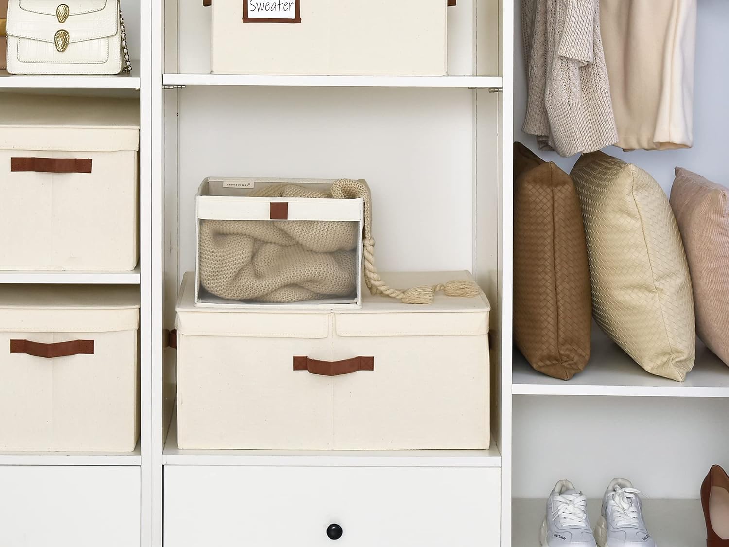 - Space-Saving Design: Light-weight collapsible canvas storage box for space-saving organization.