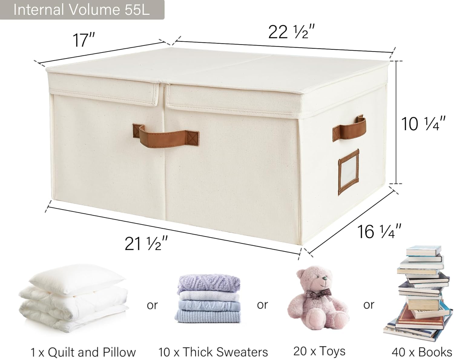- Large Capacity: Served as the closet storage organizer, the 55L extra large fabric storage bins with lids are ideal for storing large blankets, seasonal clothes, sweaters, bedding, toys, etc.