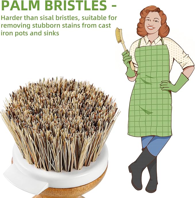 - 【Wide Applications】:Sisal bristles are suitable for cleaning pots/dishes. Palm bristles are suitable for cleaning cast iron pans/kitchen sinks.
