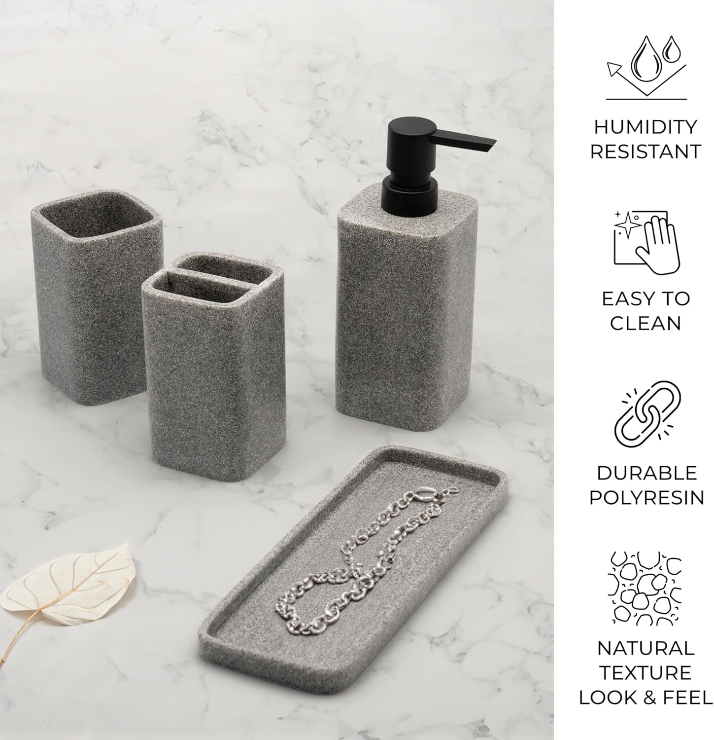 - Included Components : Dispenser, Toothbrush Holder, Tumbler, Vanity Tray