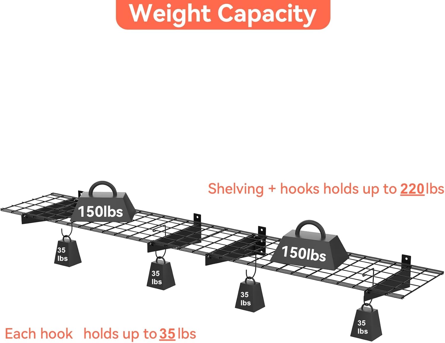 - Solid & Well Constructed: Garage wall mount shelving is made of high quality steel with powder coated finish and well constructed. Holds up to 220 lbs/shelf