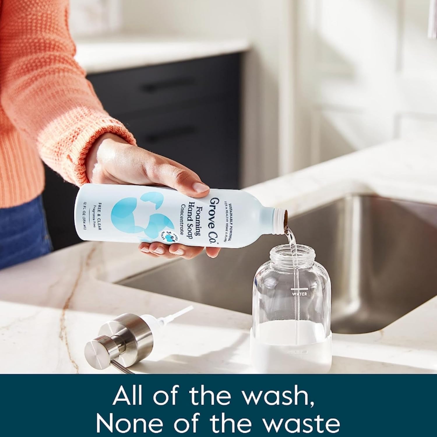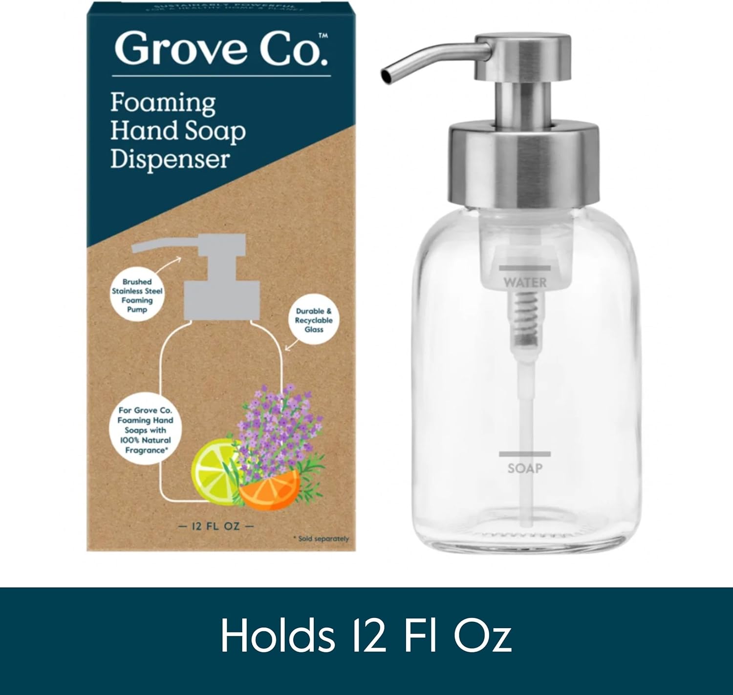 - FOAMING HAND SOAP DISPENSER BUNDLE: This bundle includes two Grove Co. signature glass hand soap dispensers, designed for use with our hydrating foaming hand soap. Make a clean start for a healthy home and healthy planet with our foaming hand soap dispensers