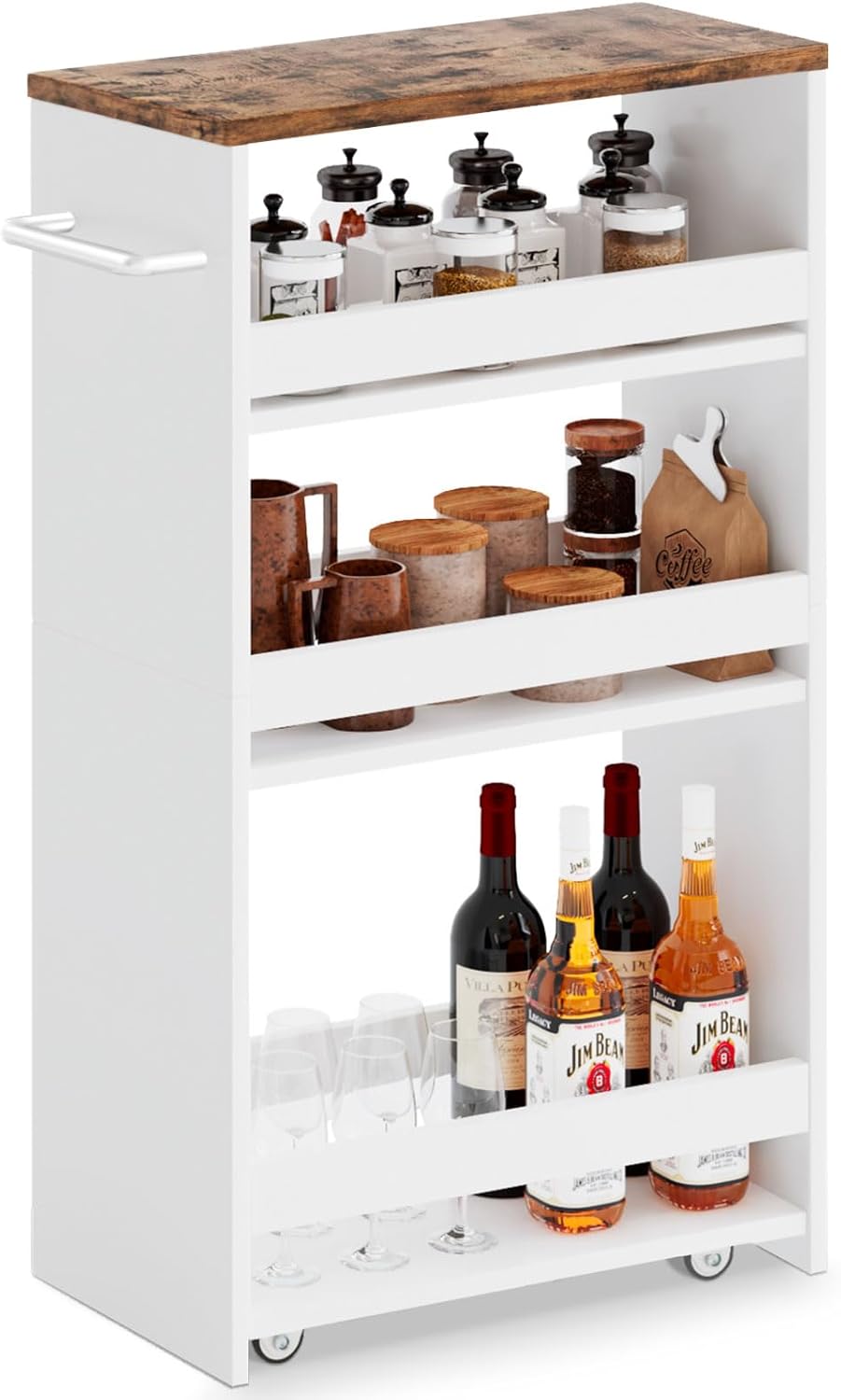 - 【Sturdy and Durable】This multifunctional slim rolling cart is made of high quality MDF board. Each layer has a protective bar to prevent things from falling down. Stronger than metal mesh baskets.