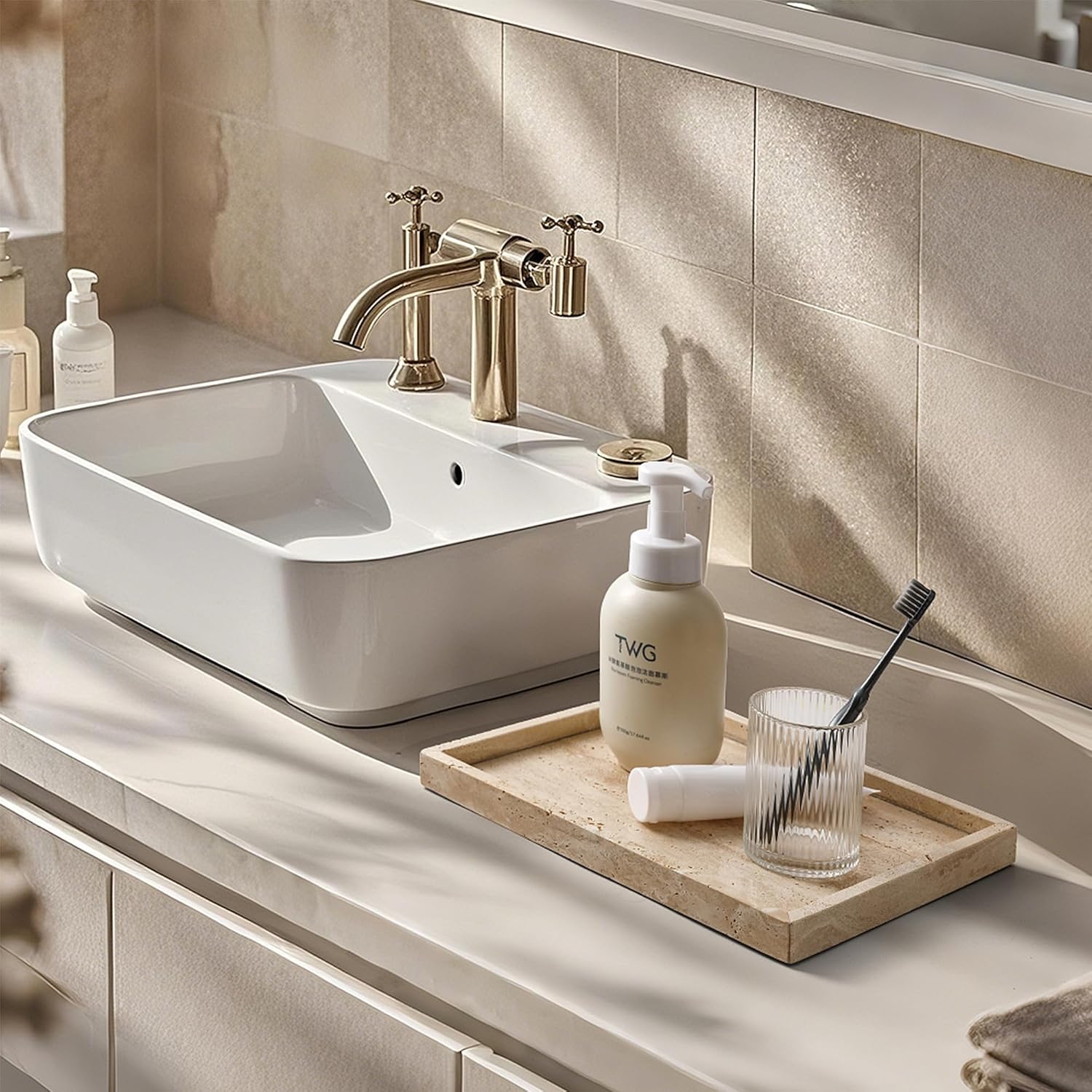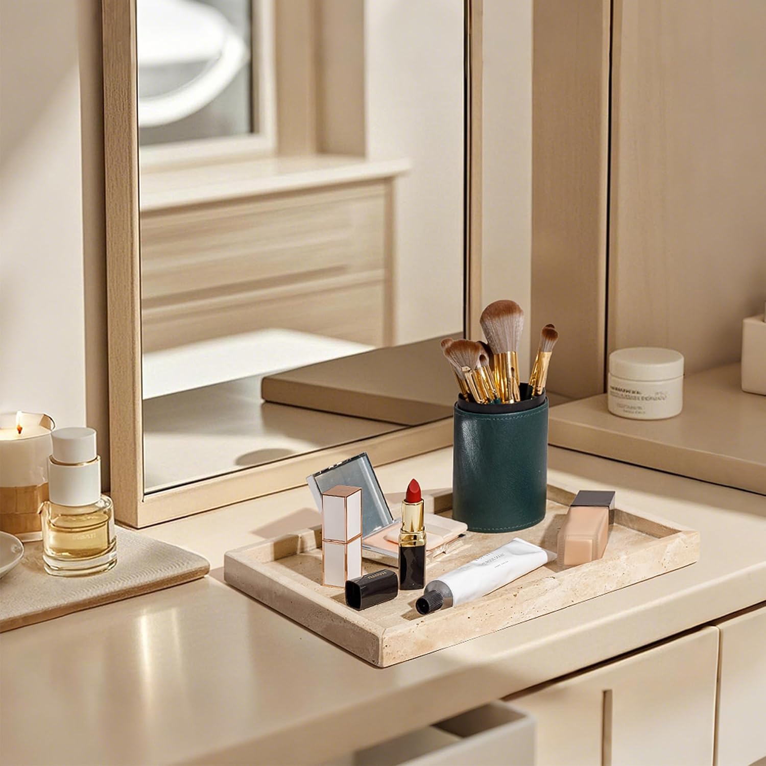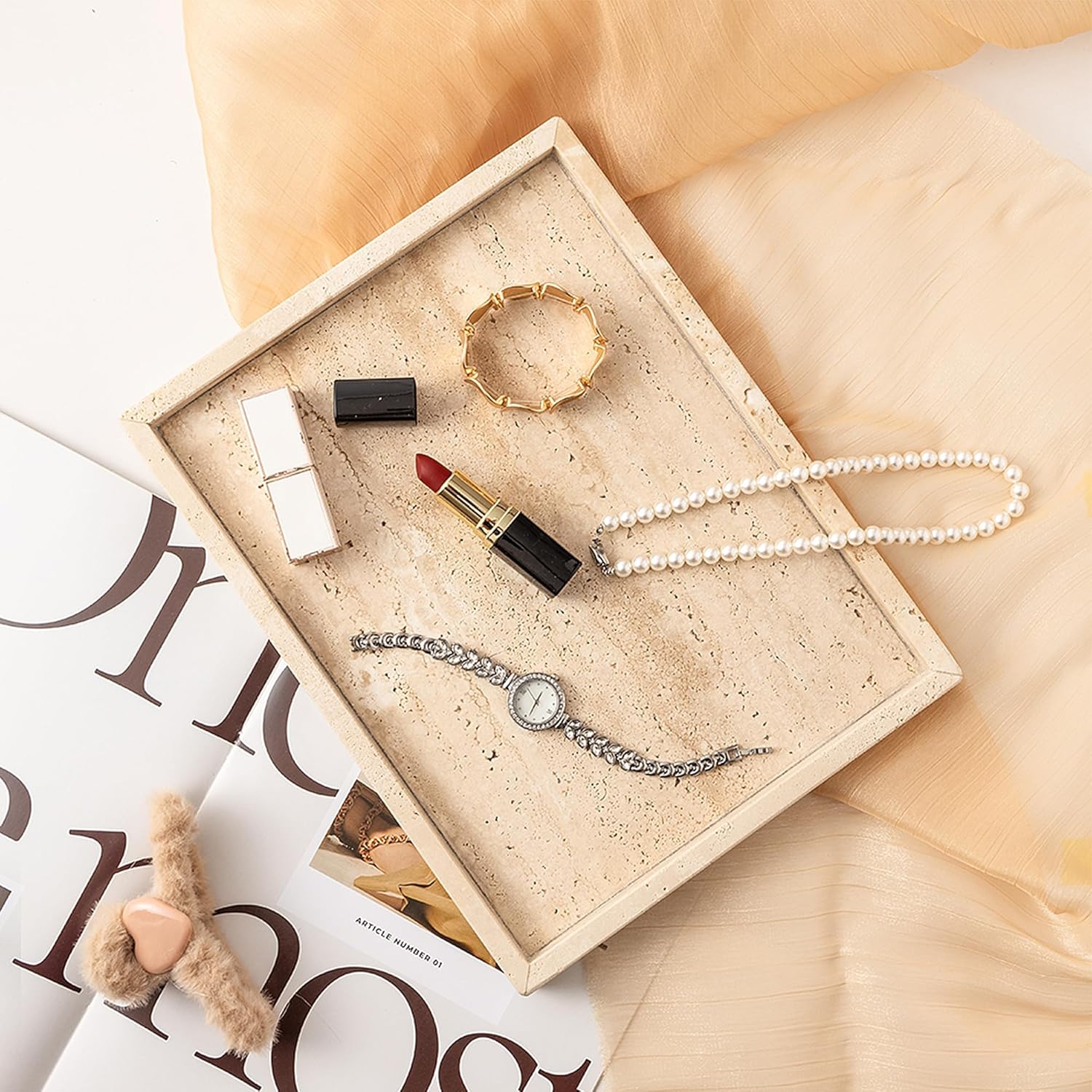 WORHE Vanity Tray Italy Travertine Stone for Jewelry, Perfume, Makeup, Candle Large Natural Marble Decorative Trays for Bathroom Dresser Rectangle Kitchen Storage Organizer for Home Decor Beige(WH021)
