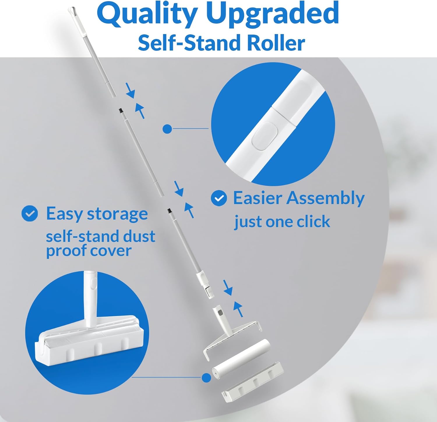 - 【Quick Assembly & Easy Storage】The upgraded, sturdier handle connects in seconds and stays firmly in place during use. When finished, simply hang or stand the lint roller with the protective cover—a smart, space-saving design for closets, corners, or behind doors.