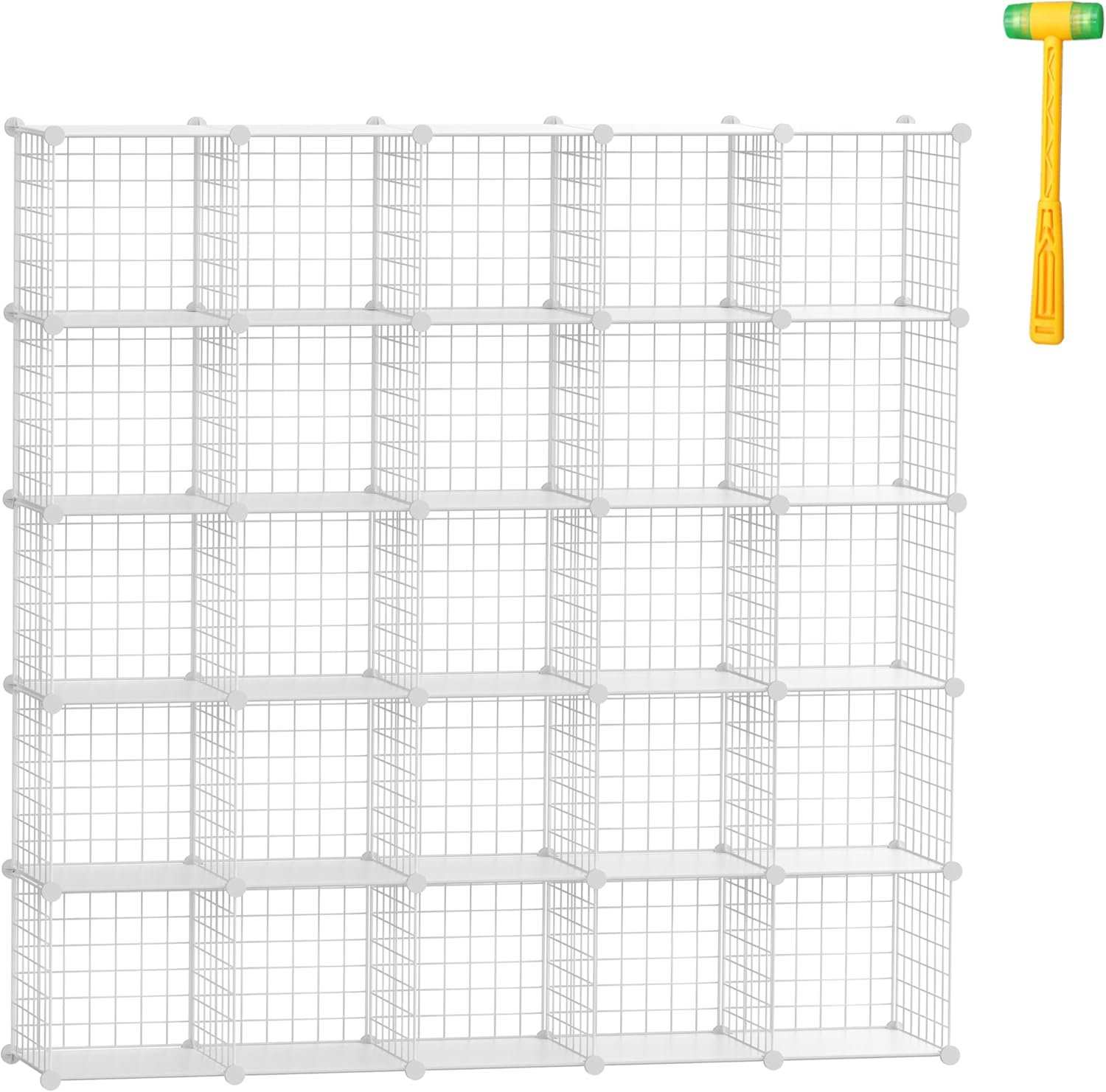TUMUCUTE Cube Storage Organizer, Metal 25-Cube Shelves Bookshelf, Portable Closet Clothes Organizer for Bedroom, Home, Office, White