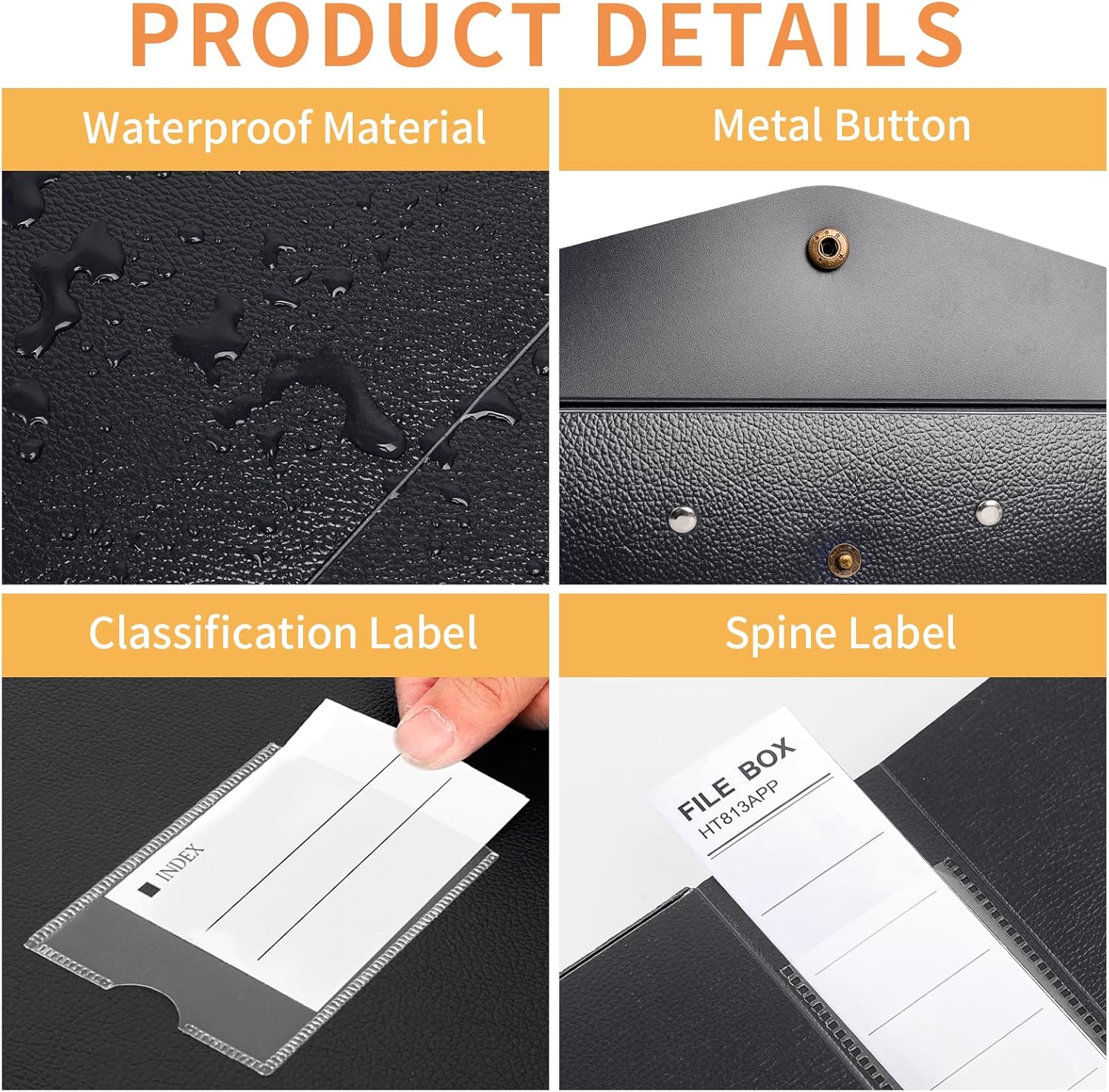 - Design: With metal buttons effectively protect files. The built-in spring clip can fix the documents well, and put the documents in the file box in order.