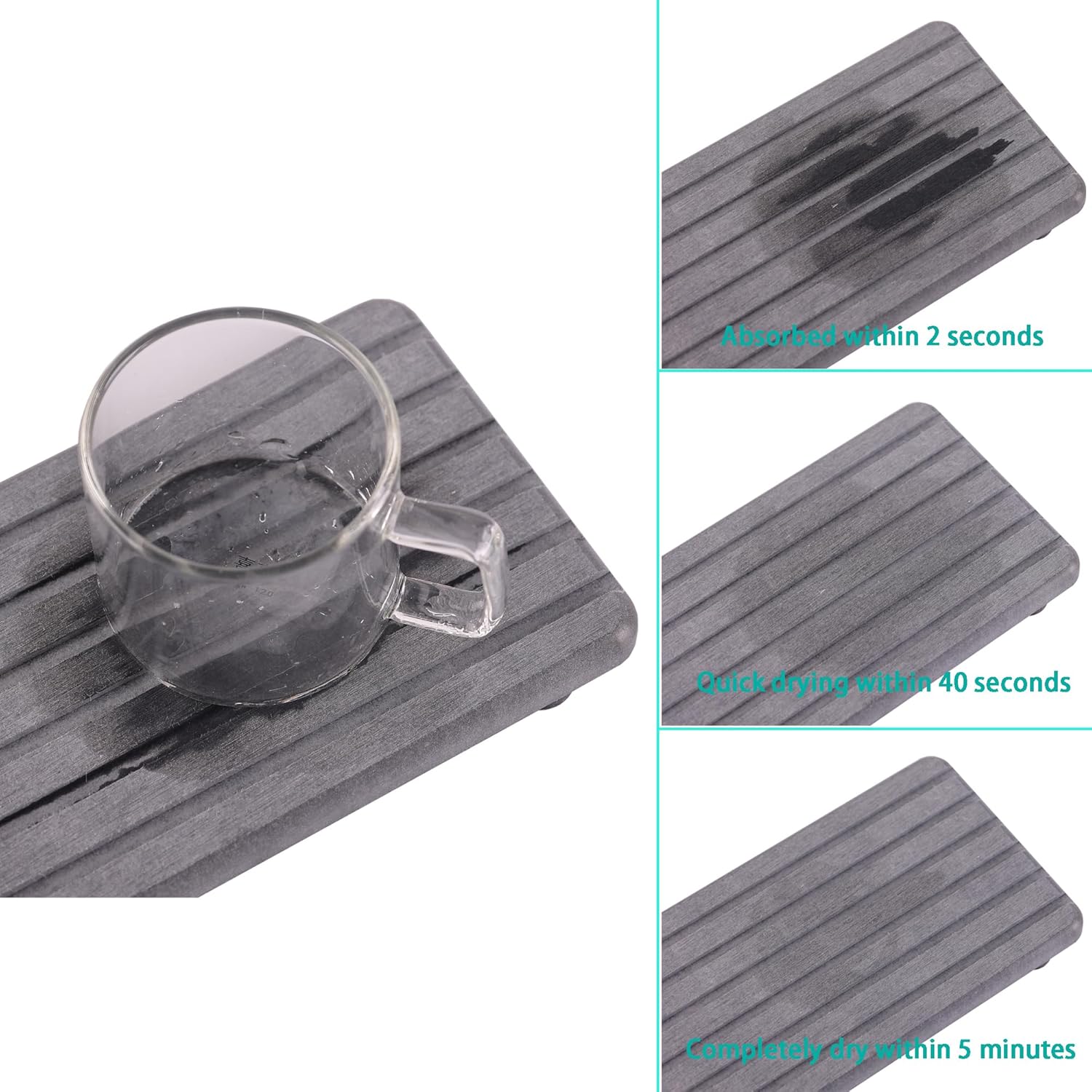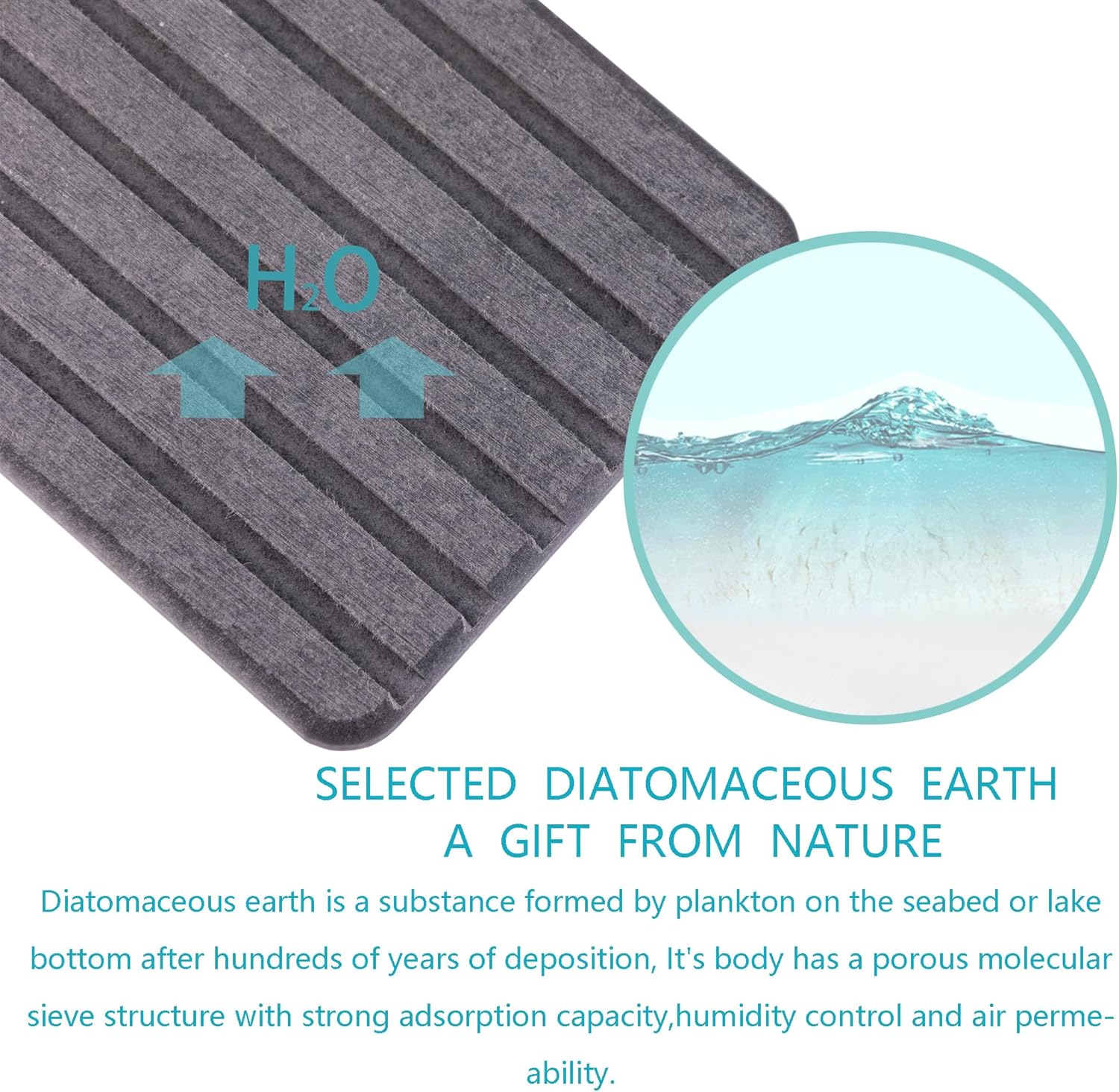 - Made from natural Diatom mud and plant fiber, small holes within diatomite enable it have amazing water absorption. They could absorb water and gets dry in a few minutes. It makes the Bathroom Counter top more dry and tidy.